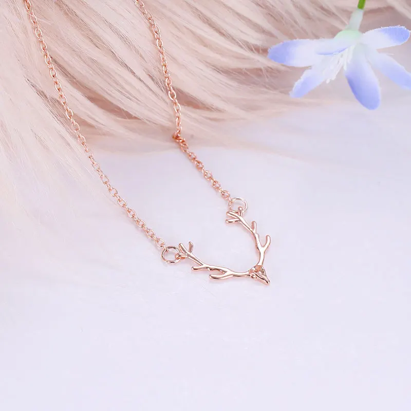 Винтажное ожерелье с маленькими оленями Woozu, ожерелье с оленями и маленькими рогами, милое ожерелье-чокер для женщин, подвески, Ювелирное Украшение