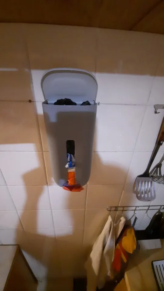 Удобная штука, хорошо крепится к стене. Заменяет пакет с пакетами