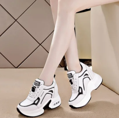 Кроссовки женские на платформе со скрытой танкеткой, повседневные прогулочные туфли на шнуровке, толстая нескользящая подошва, желтые
