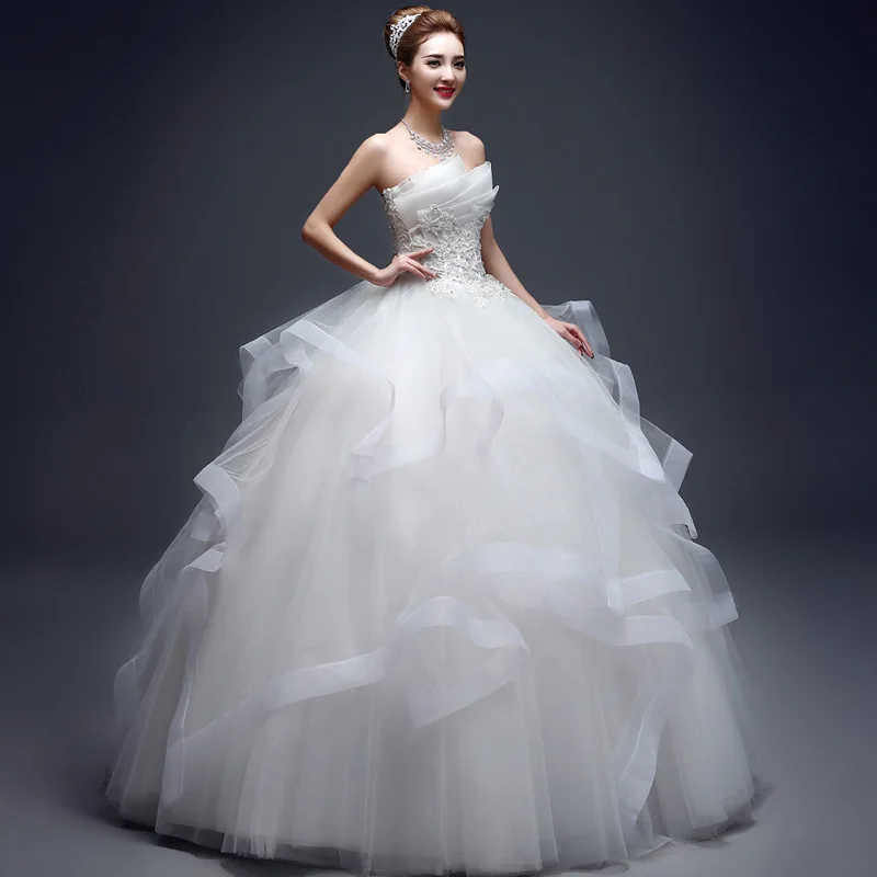 Женское бальное платье, свадебное платье без бретелек, свадебные платья со шнуровкой, белый комплект с вышивкой из смолы, дешевая оптовая продажа