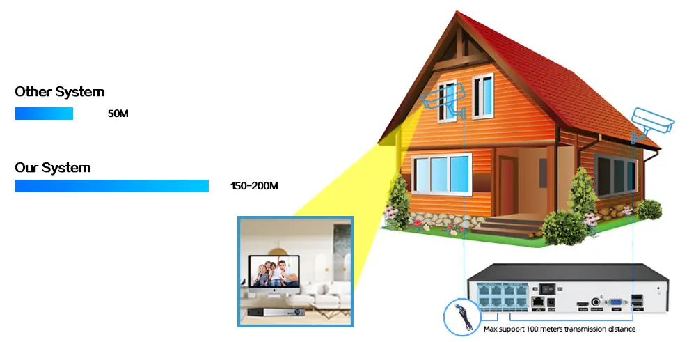 Максимальная поддержка POE 150 м-200 м расстояние передачи кабелей POE, что значительно увеличивает удобство домашней установки.