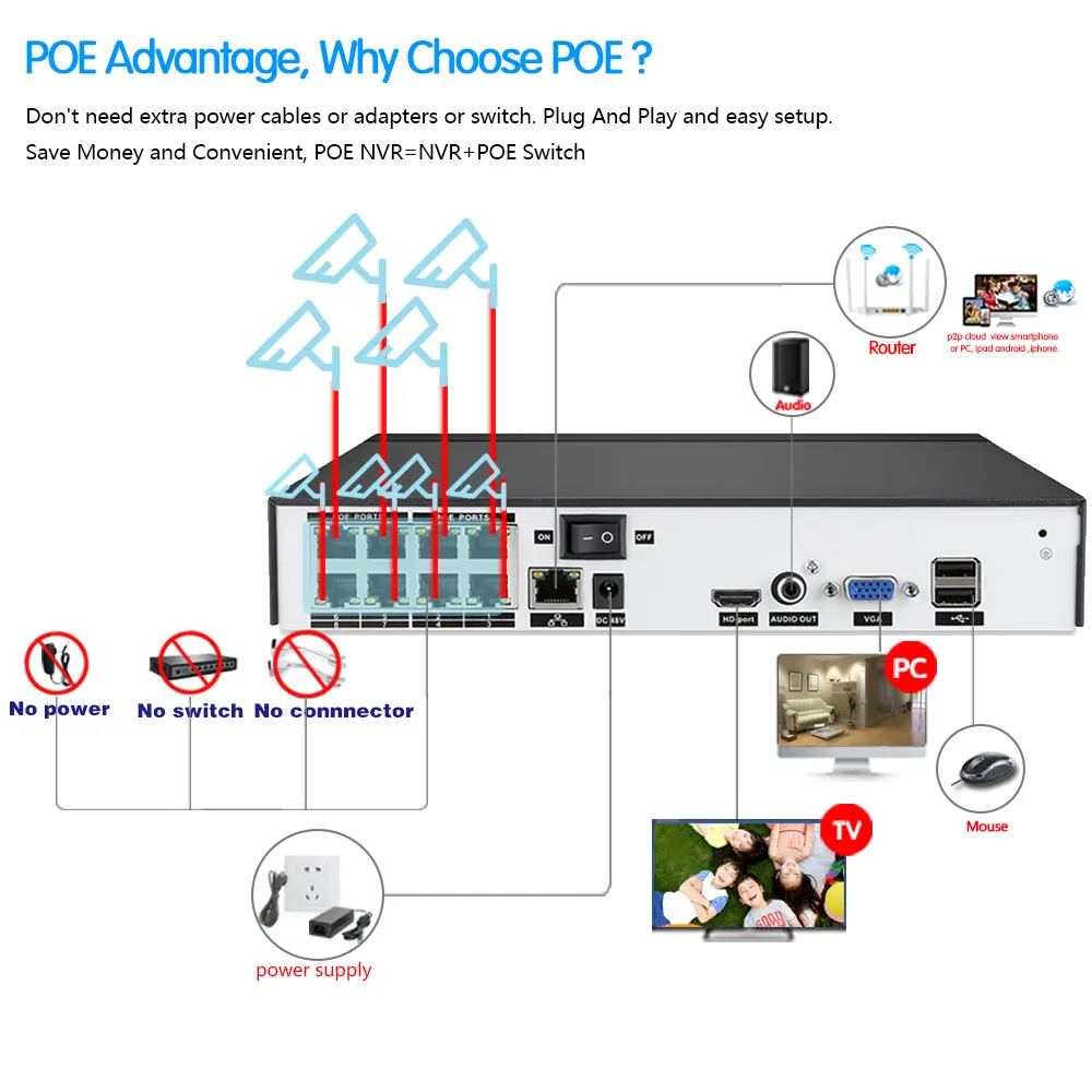 POE NVR More FeaturesFace Record,Face Detection,Face Playback