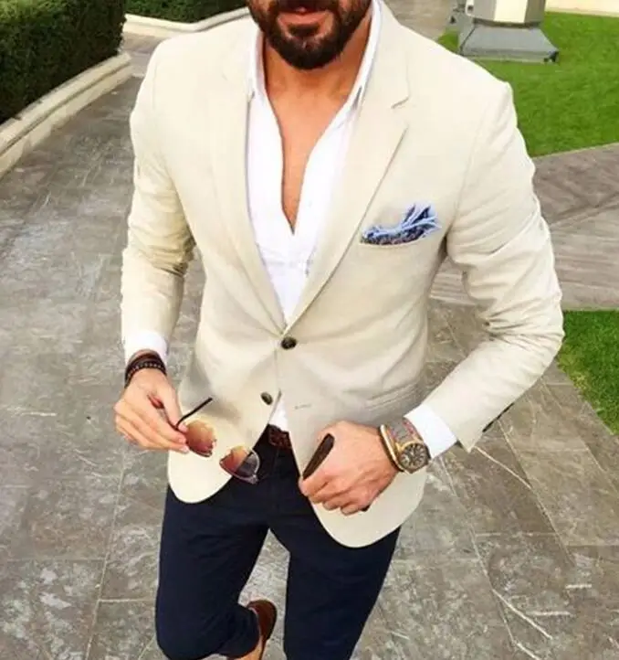 Бежевый Блейзер темно-синие брюки индивидуальный заказ мужской костюм из 2 предметов смокинг для жениха приталенные мужские свадебные смокинги Terno Masculino