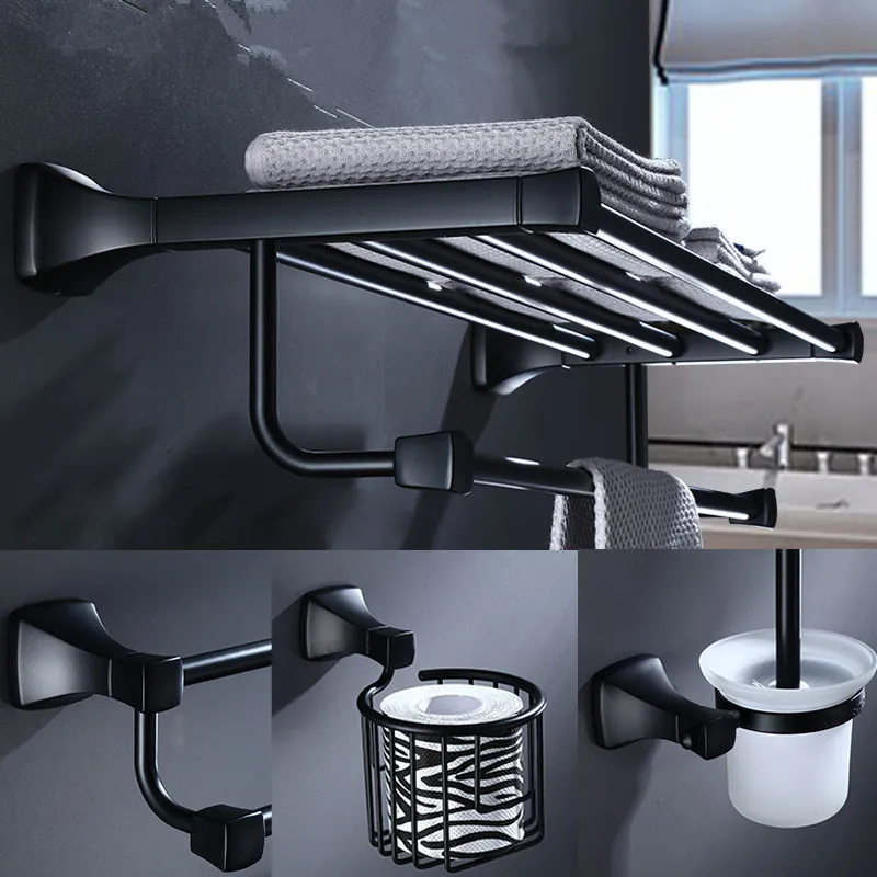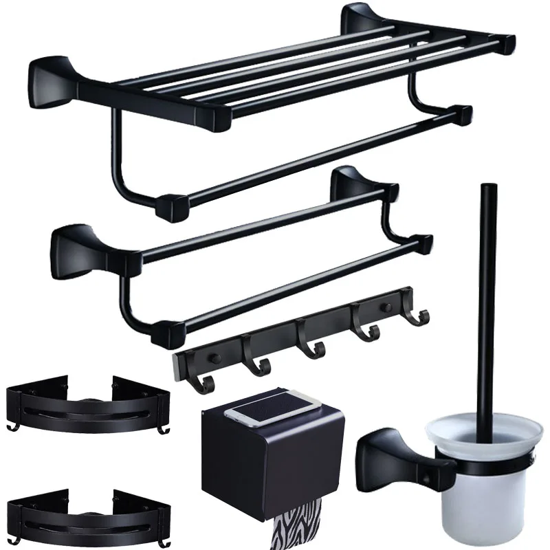 Аксессуары для ванной комнаты держатель для полотенец держатель для бумаги, угловая полка, вешалка для полотенец, держатель для туалетной щетки алюминиевый черный набор фурнитуры для ванной