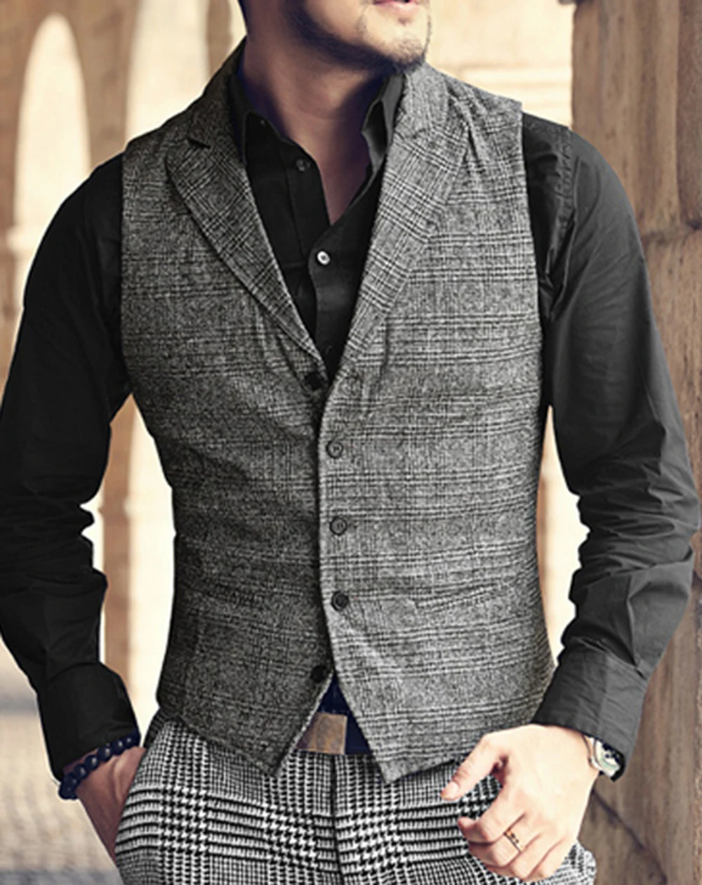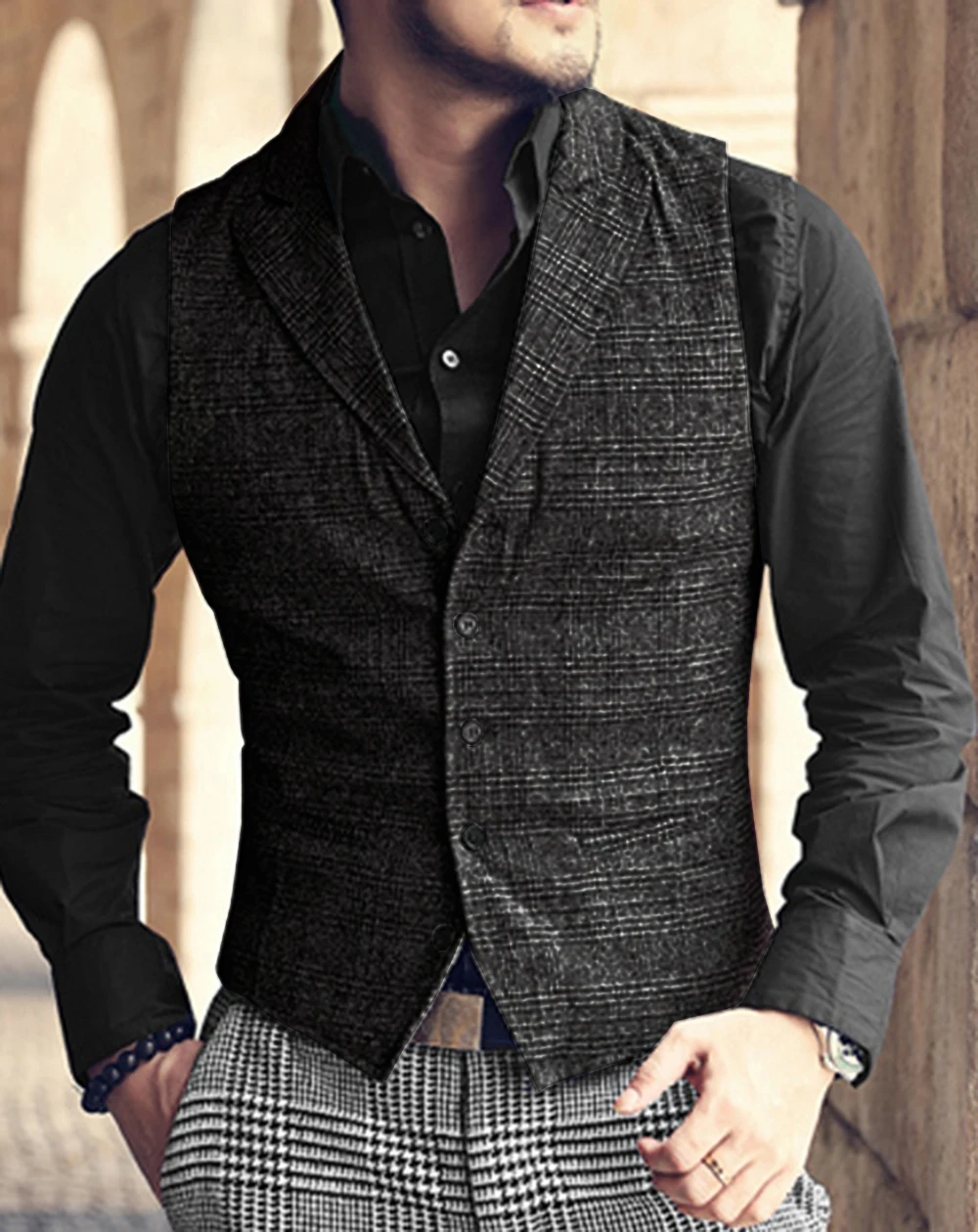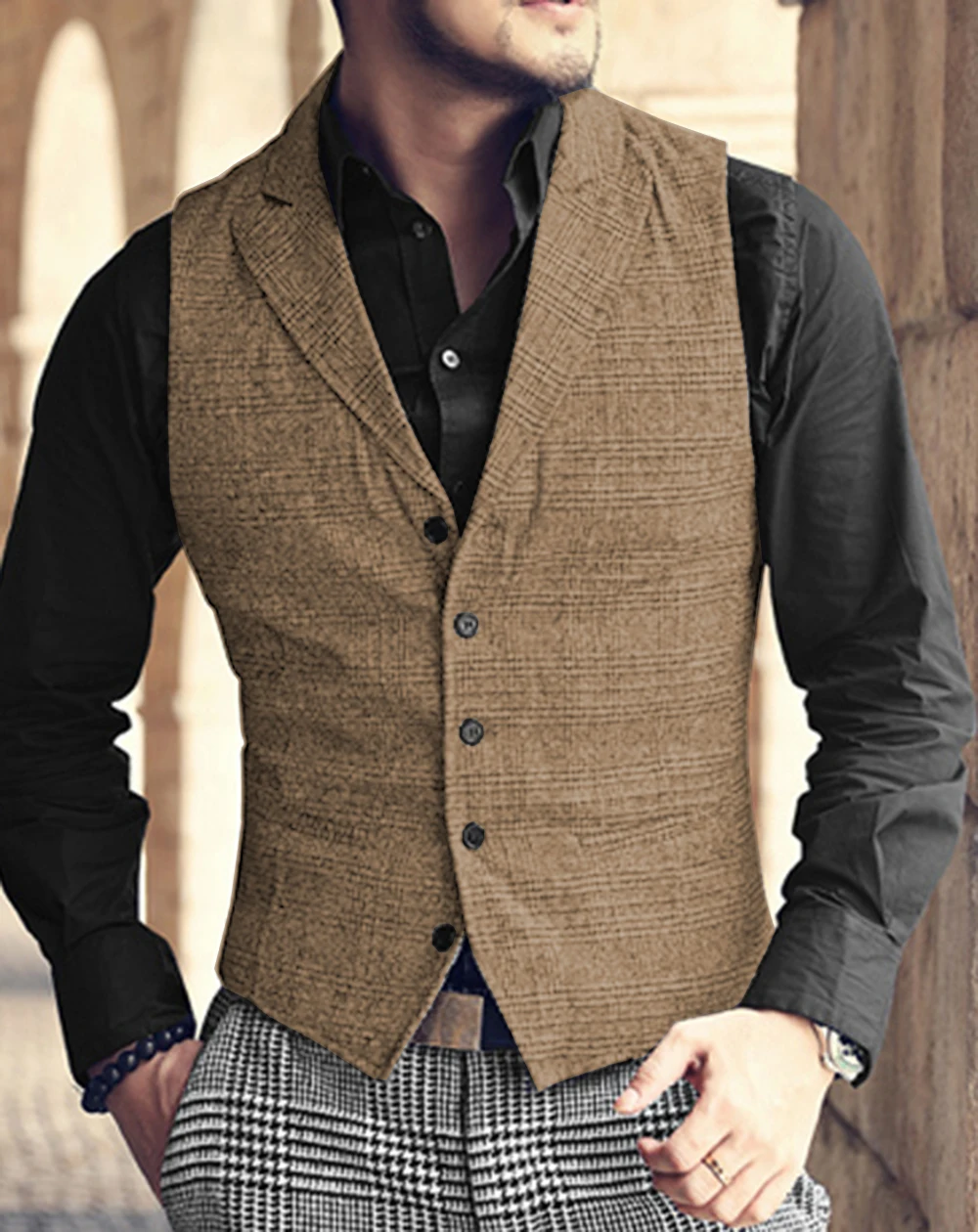 Жилет мужской твидовый, коричневый, в шотландскую клетку