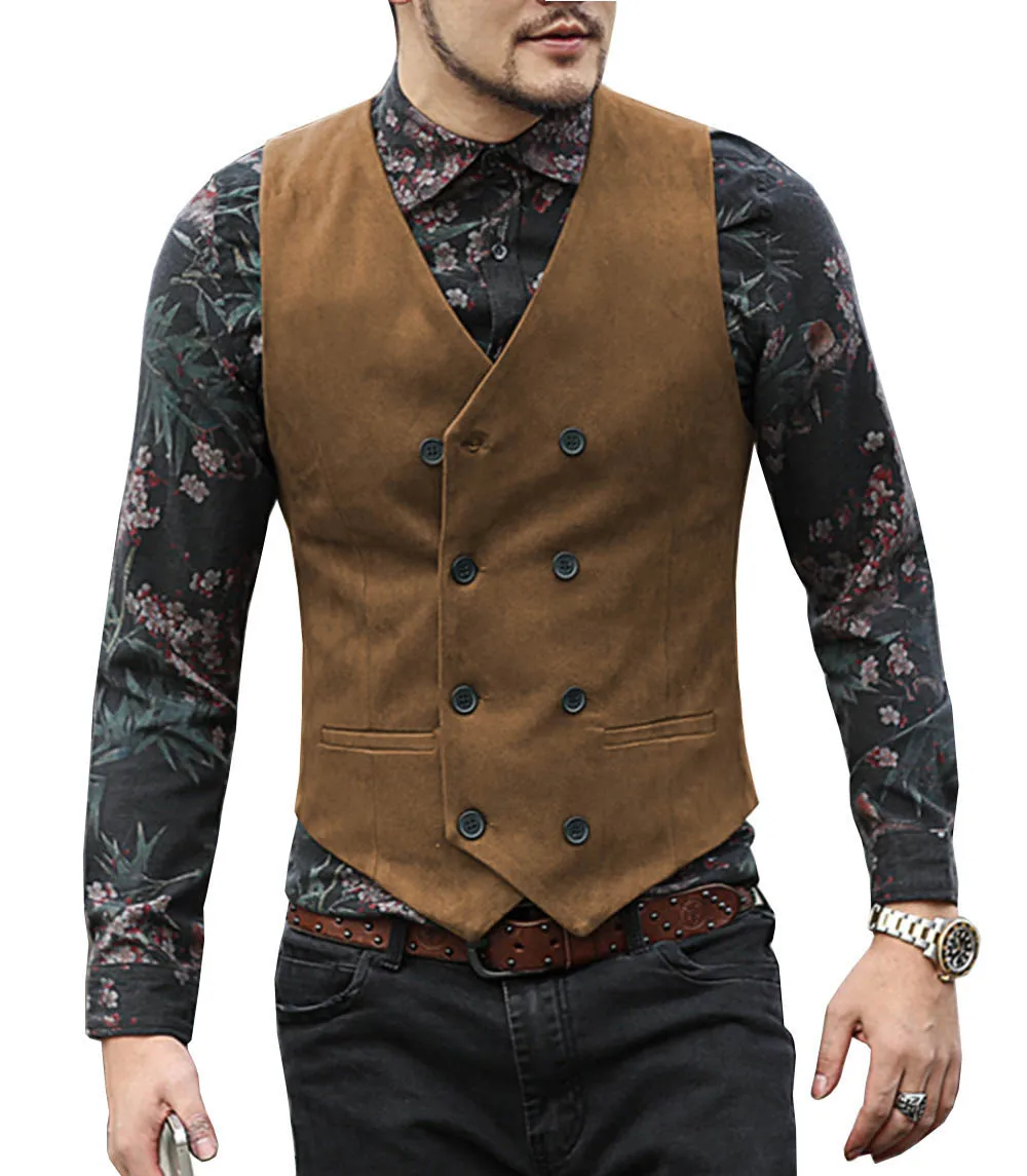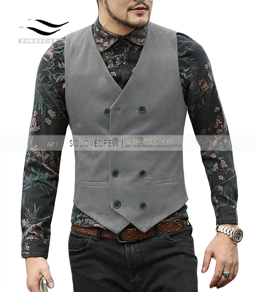 Мужской замшевый жилет, повседневный двубортный жилет с V-образным вырезом, Классическаявинтажнаяджинсовая куртка для мужчин, новинка 2020