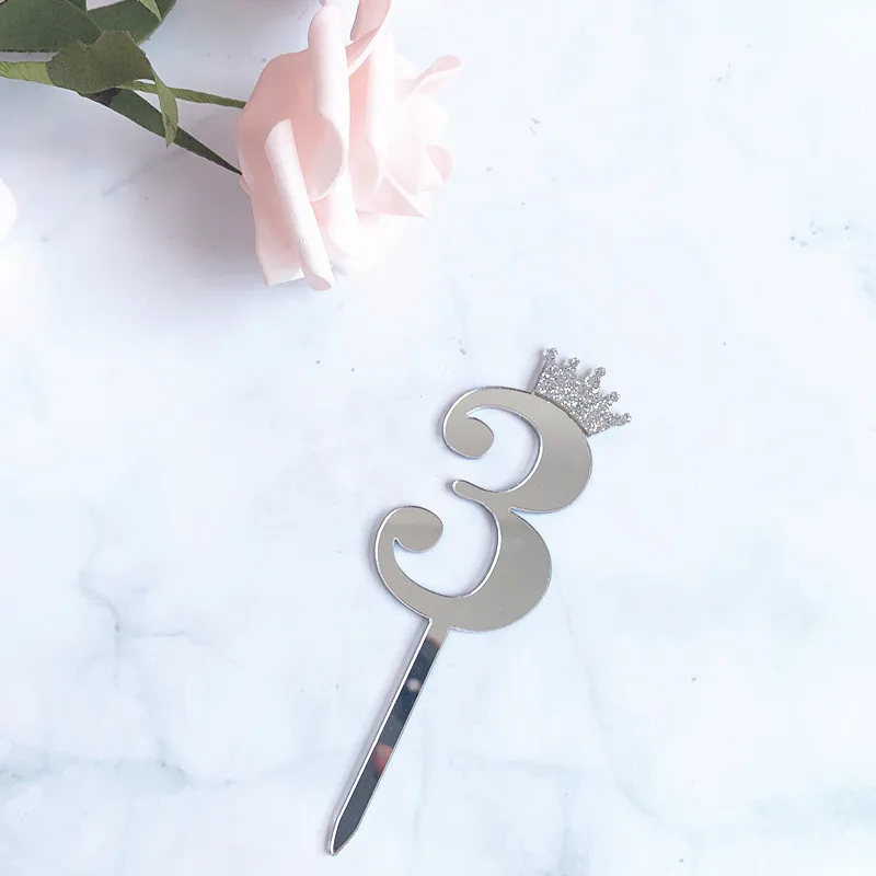 Цифра, топпер для торта, золотая, серебряная, Акриловая Корона, 0-9...