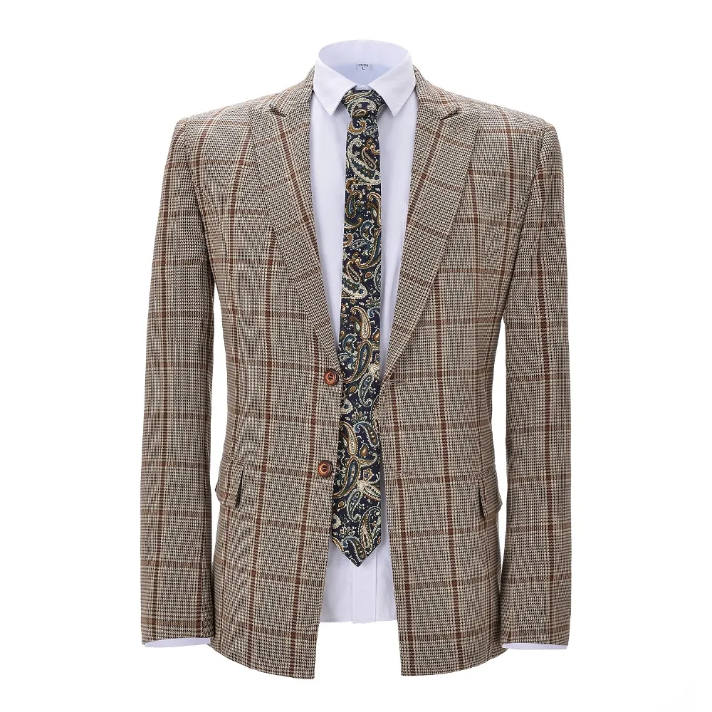 Мужской костюм из двух предметов, облегающий деловой костюм жениха, смокинг в коричневую клетку, для официальных свадебных костюмов (Блейзер + брюки)