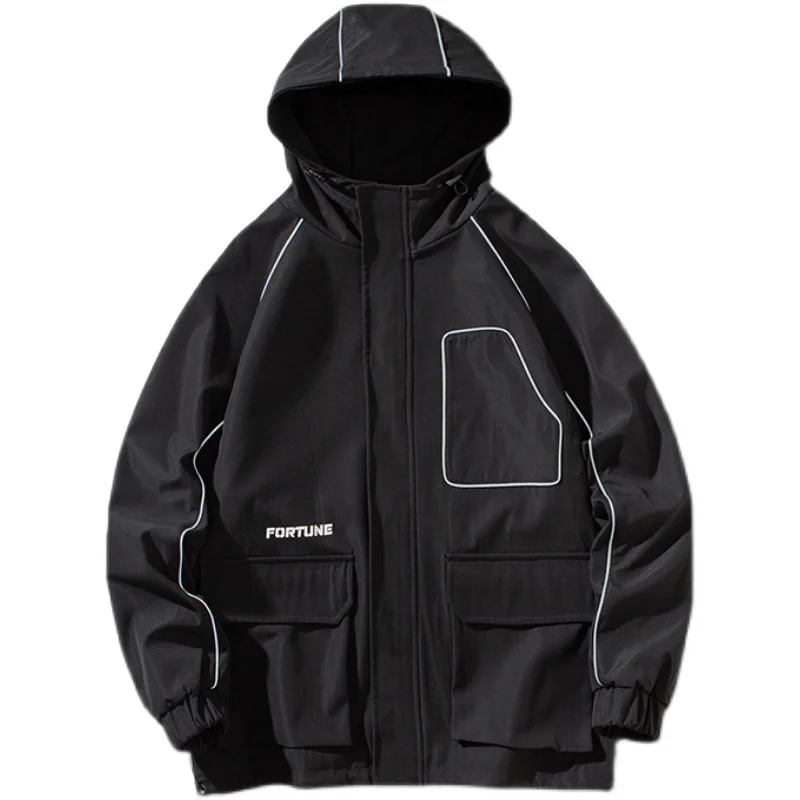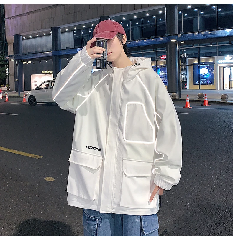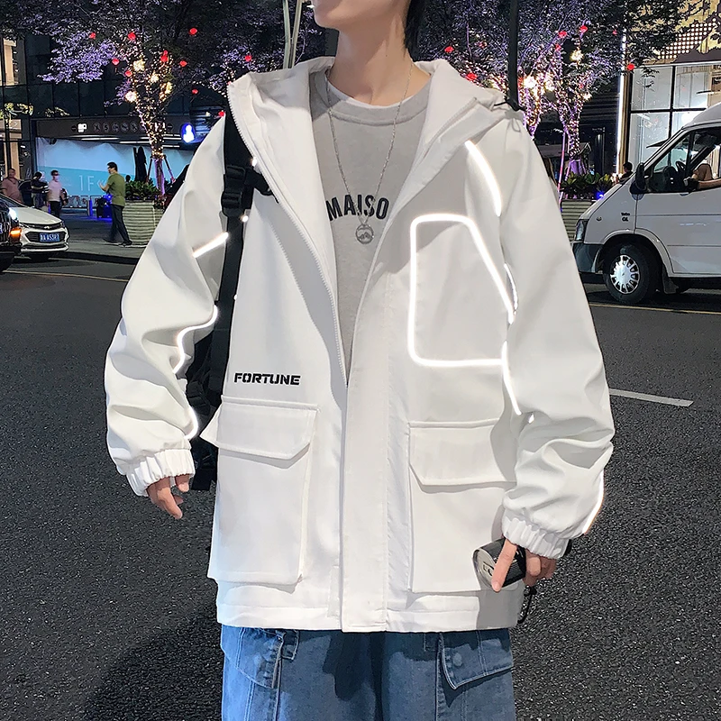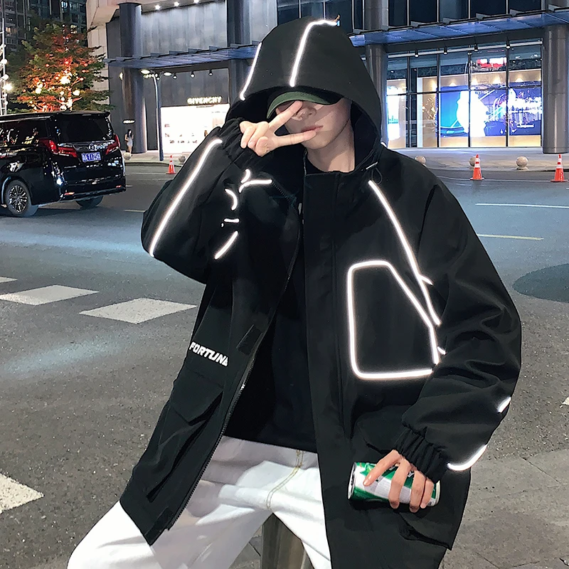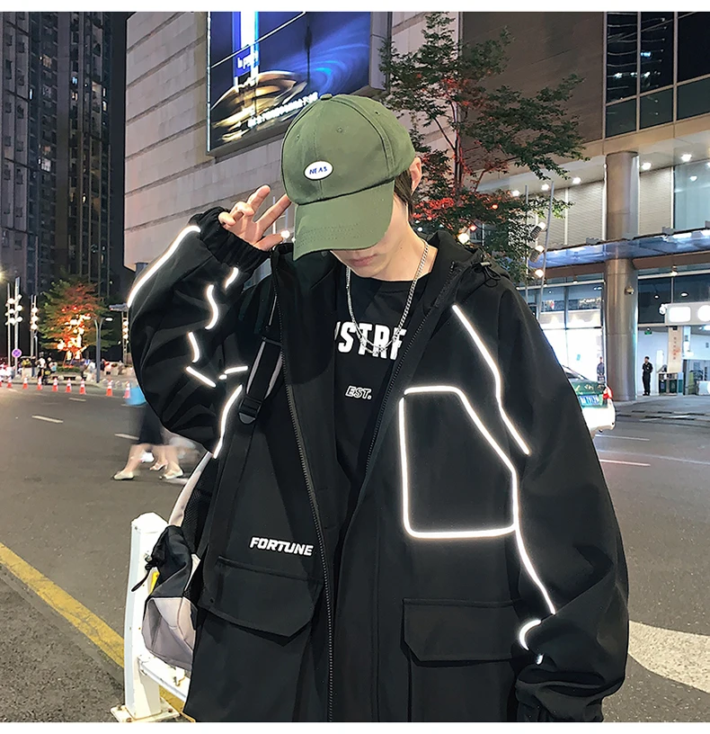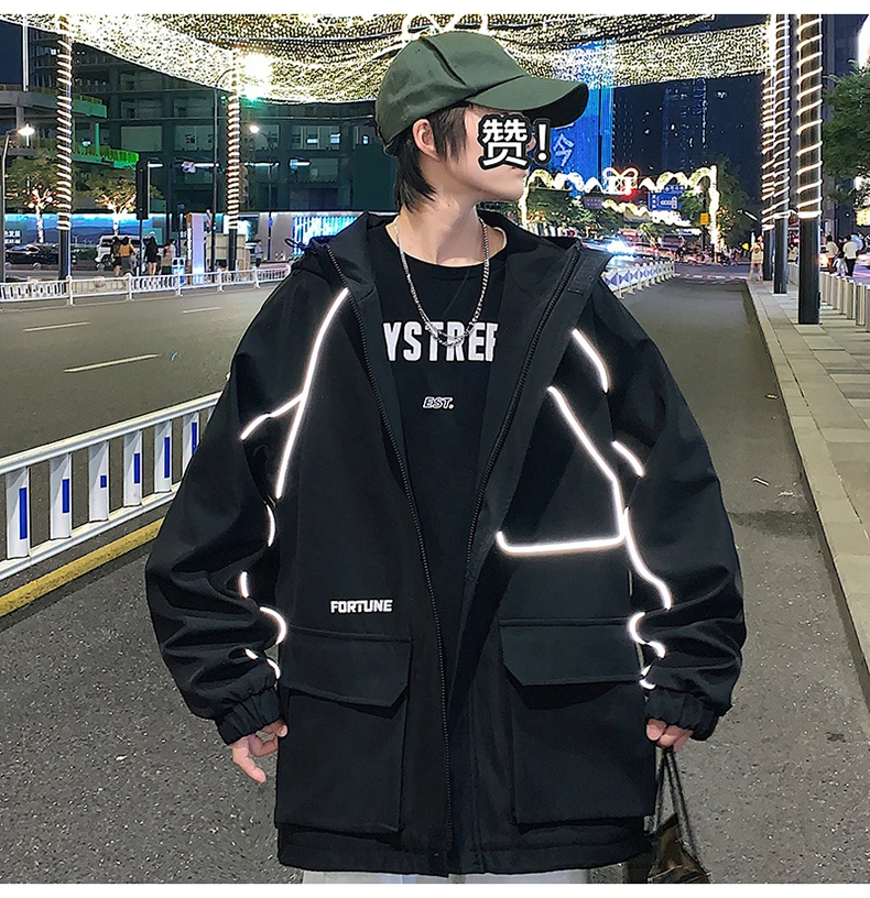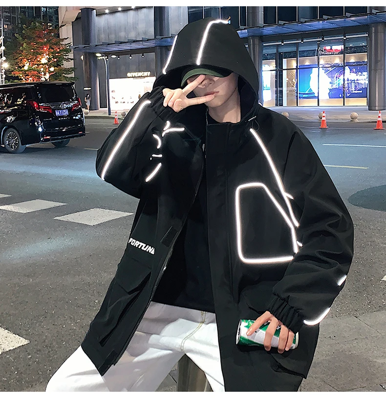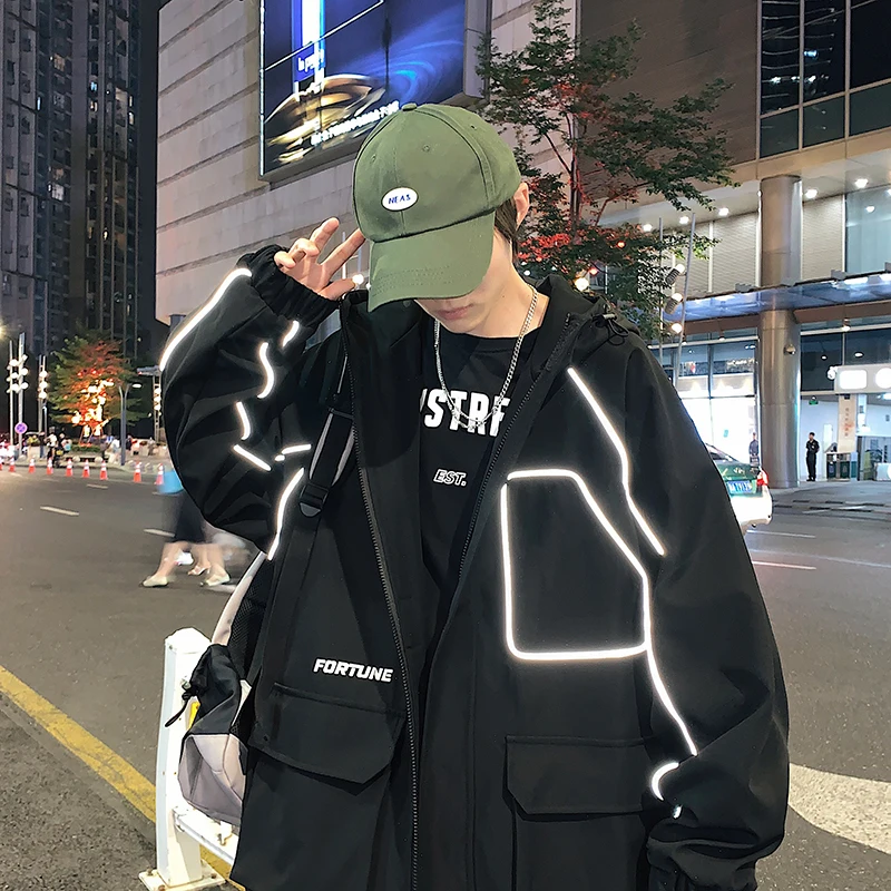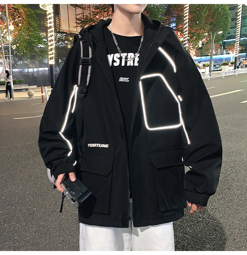 Куртка-бомбер мужская в стиле хип-хоп, с лентами, свободная, 2021