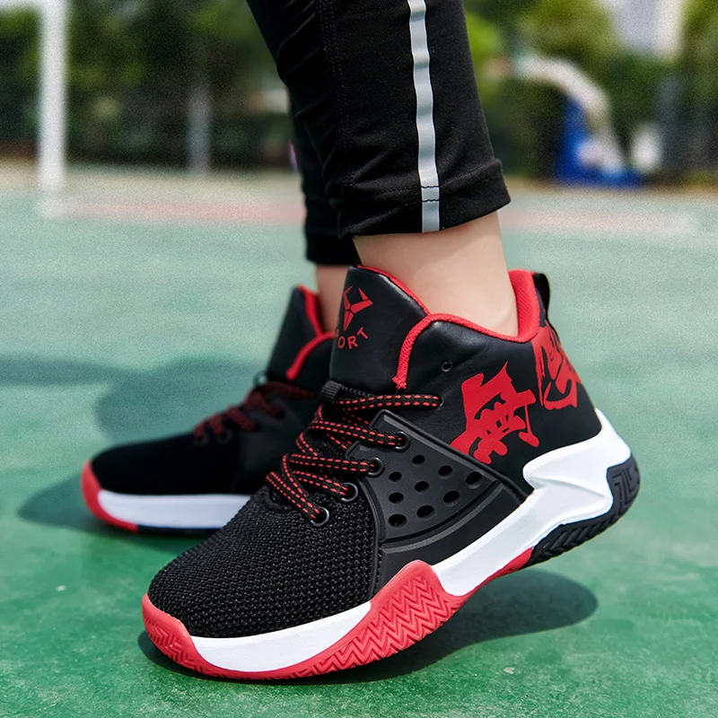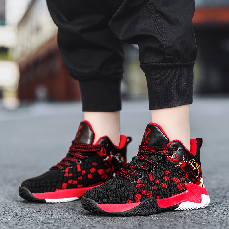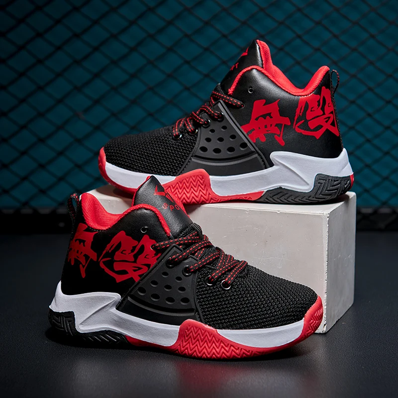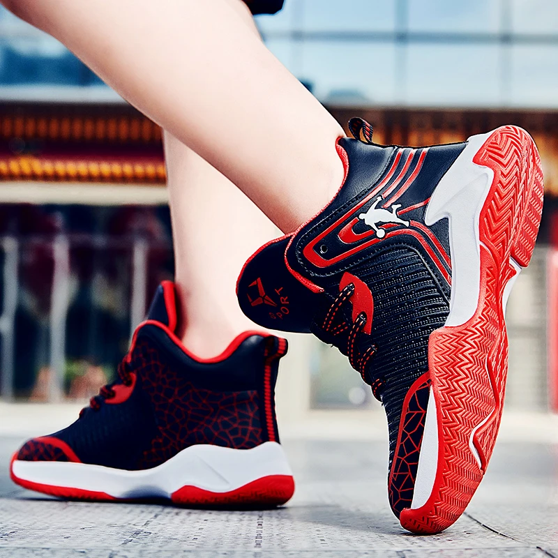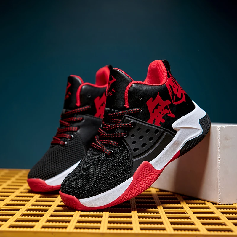 Брендовые Нескользящие резиновые детские кроссовки, черные кроссовки для баскетбола для мальчиков, уличная детская спортивная обувь, Студенческая Баскетбольная обувь, красные
