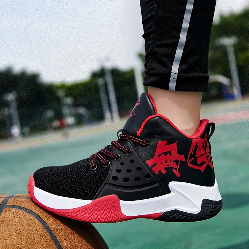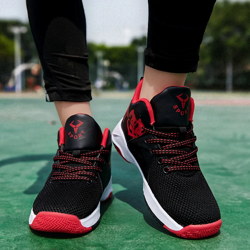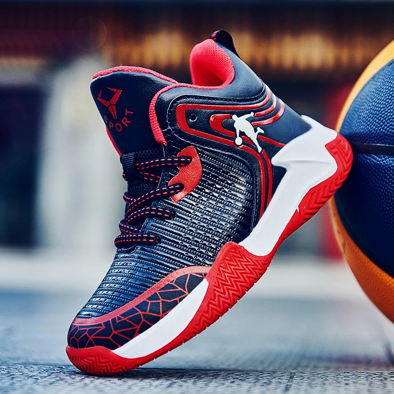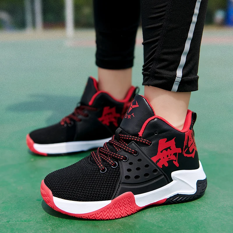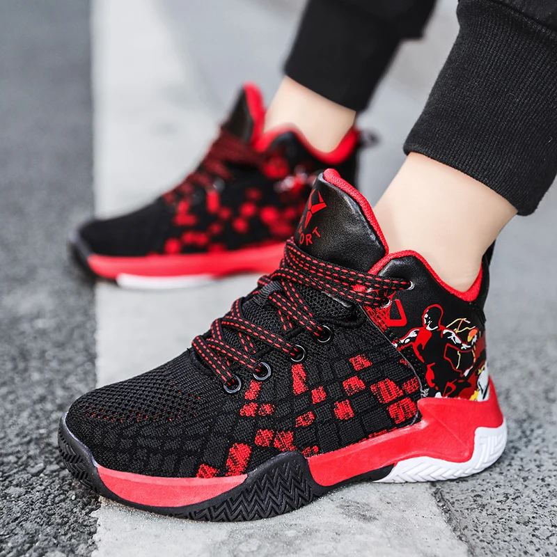 Брендовые Нескользящие резиновые детские кроссовки, черные кроссовки для баскетбола для мальчиков, уличная детская спортивная обувь, Студенческая Баскетбольная обувь, красные