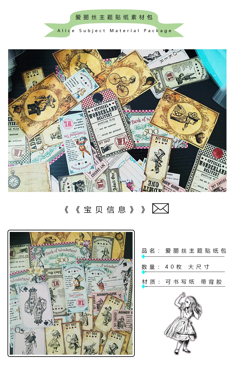 20 компл.1 лот Ретро Алиса без резинки руководство Материал декоративные наклейки DIY дневник в стиле Скрапбукинг стикер