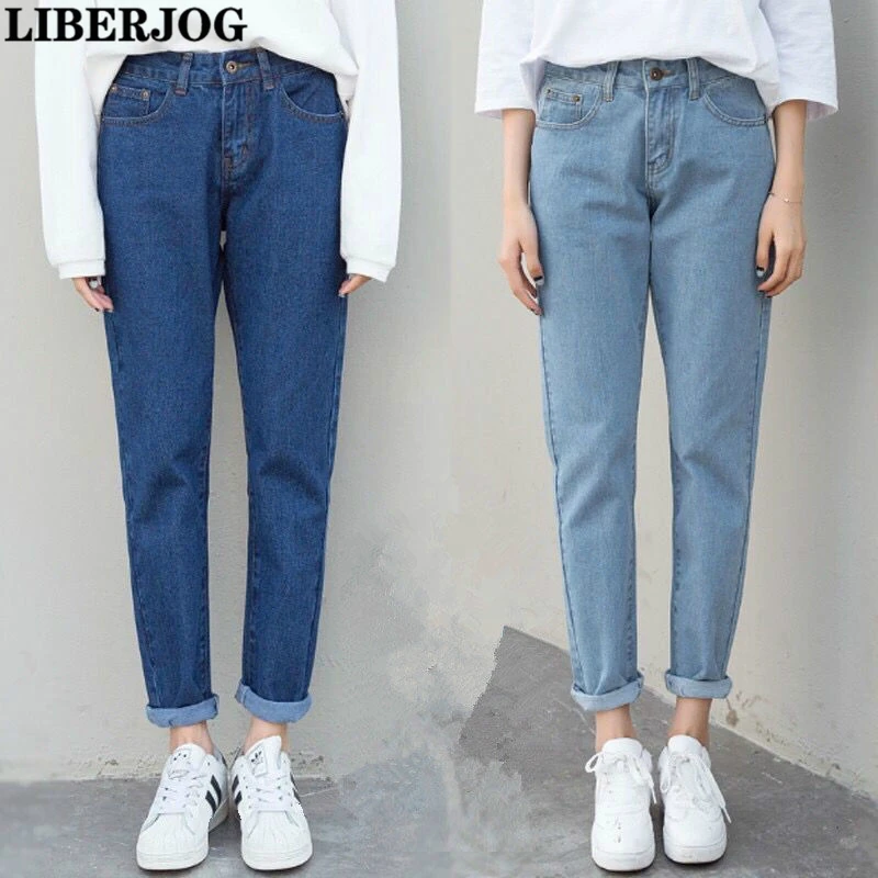 Джинсы LIBERJOG женские с высокой талией, Свободные повседневные брюки из денима, на молнии, с прорезями и карманами, прямые штаны, весна-осень