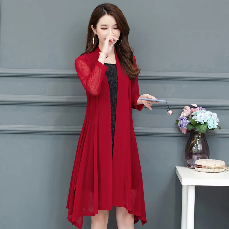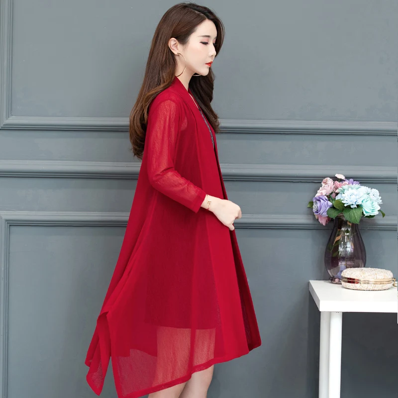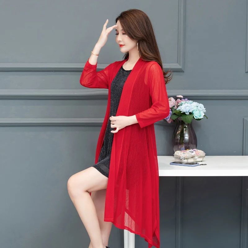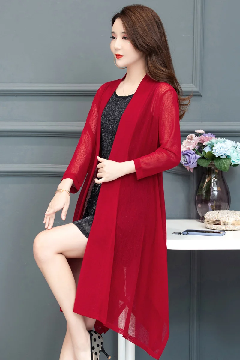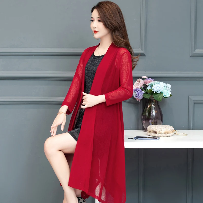 Кардиган женский тонкий, модал длинный жакет с длинным рукавом, Солнцезащитная одежда, верхняя одежда, на лето