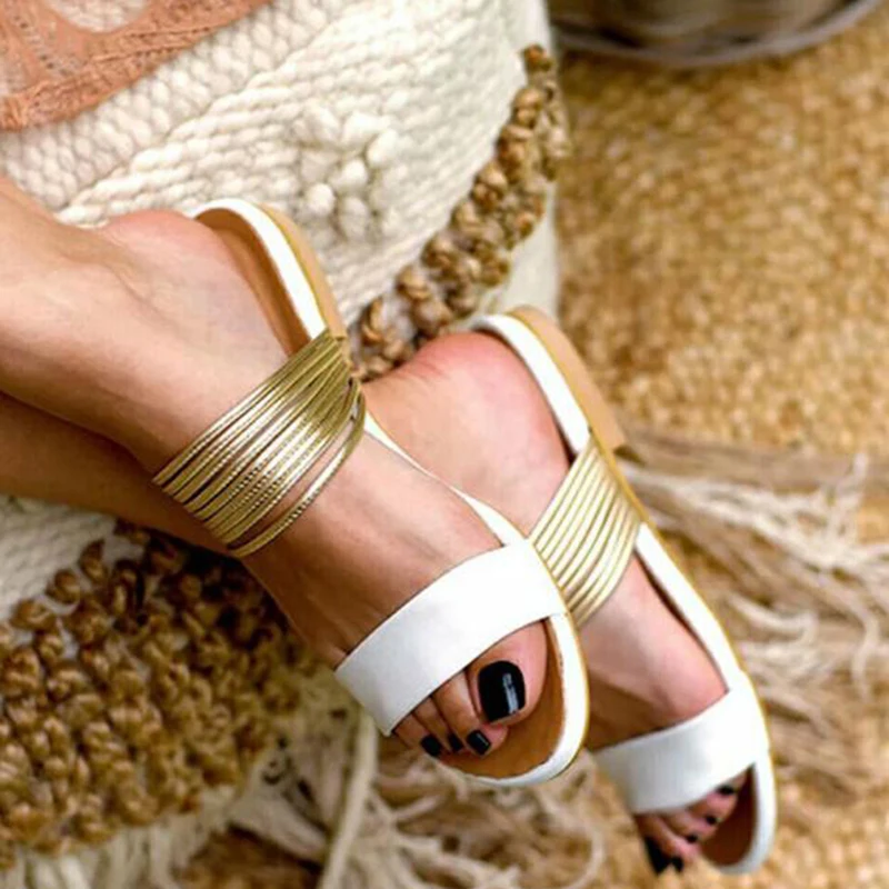 Сандалии женские на плоской подошве, босоножки-гладиаторы в стиле р...