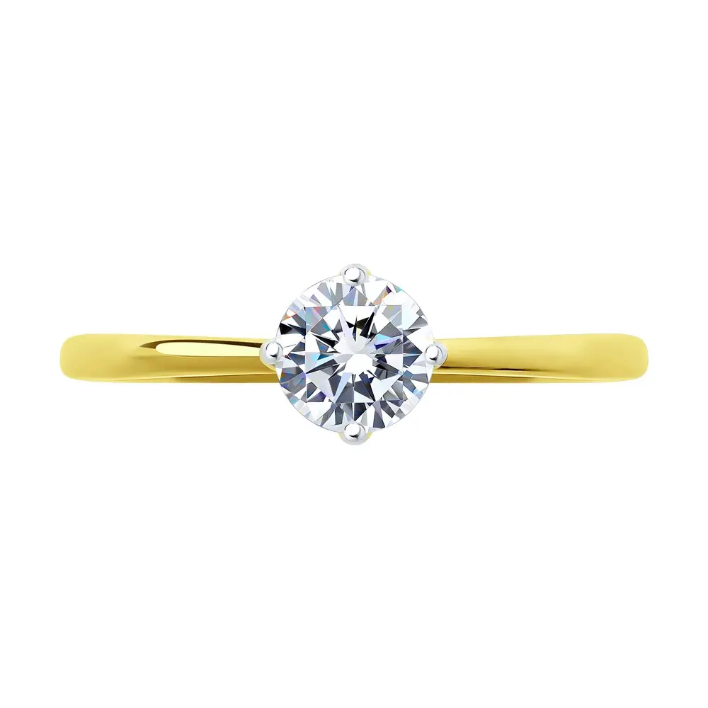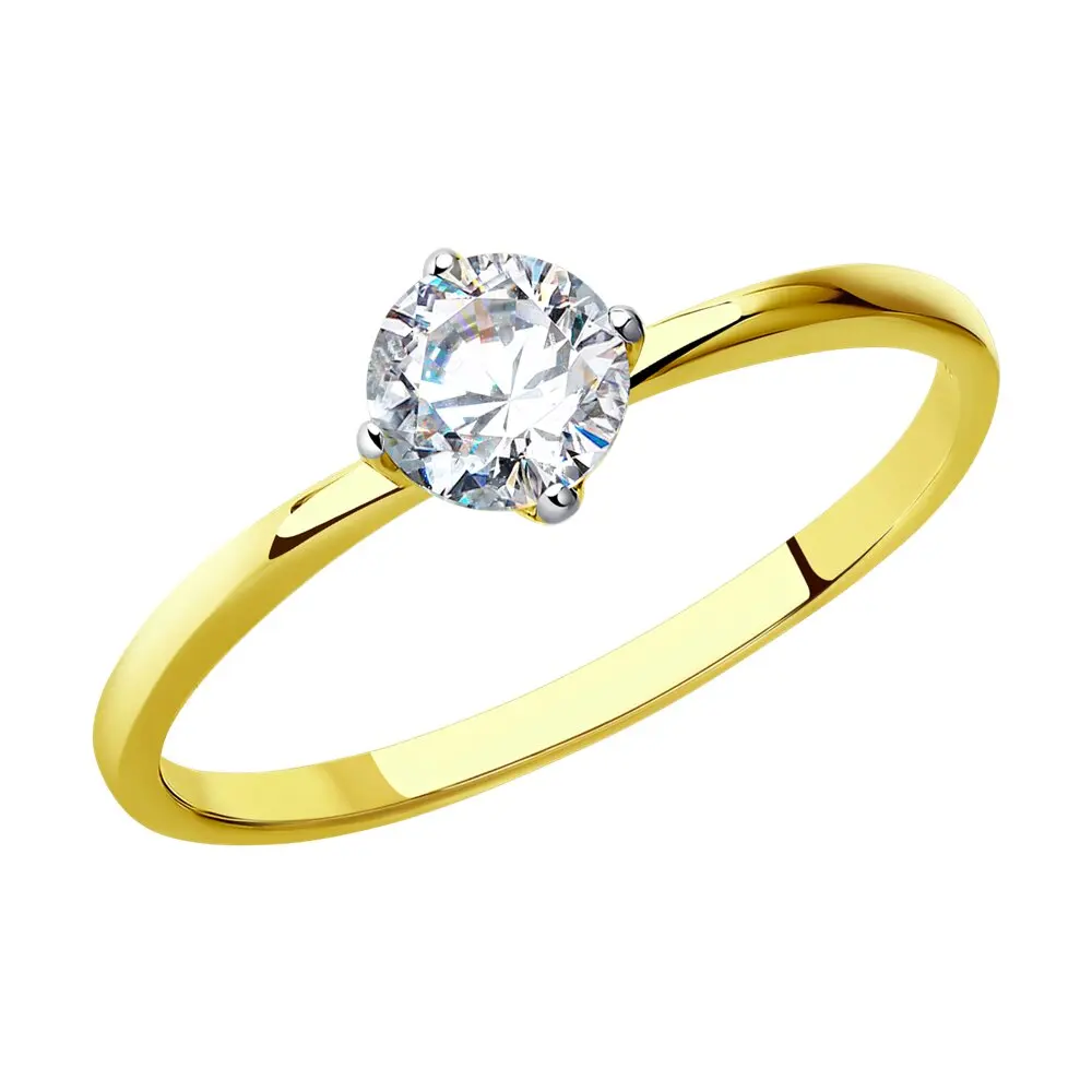 Кольцо SOKOLOV из желтого золота с фианитом, Золото, 585, Женское, Оригинальная продукция