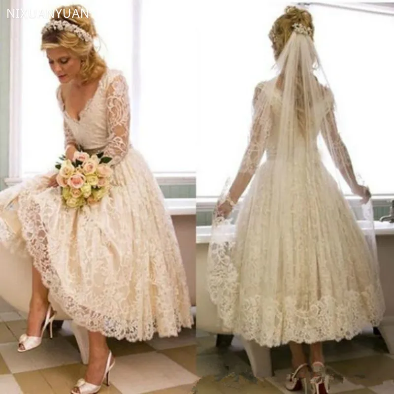ТРАПЕЦИЕВИДНОЕ кружевное свадебное платье в стиле ретро длиной до к...
