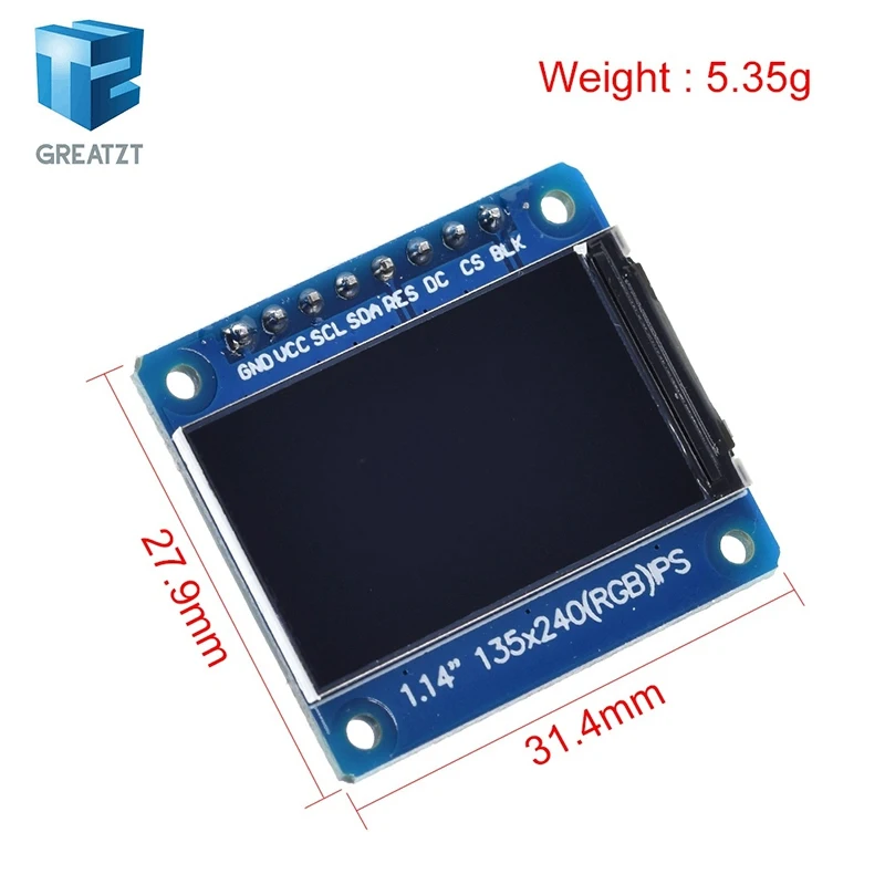 GREATZT 1 шт. Новый IPS 1,14 дюймов 3,3 В 8PIN SPI HD полноцветный TFT дисплей экран ST7789 Привод IC 135*240