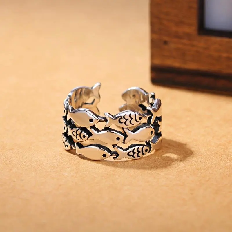 Кольцо с рыбками в винтажном стиле, маленькое регулируемое кольцо с рыбками для мужчин и женщин, подарок на день рождения, модные ювелирные изделия