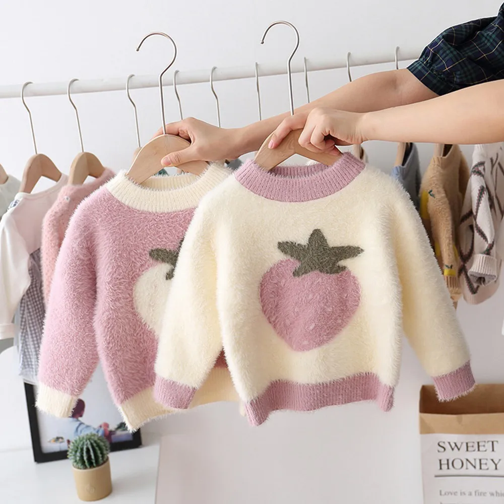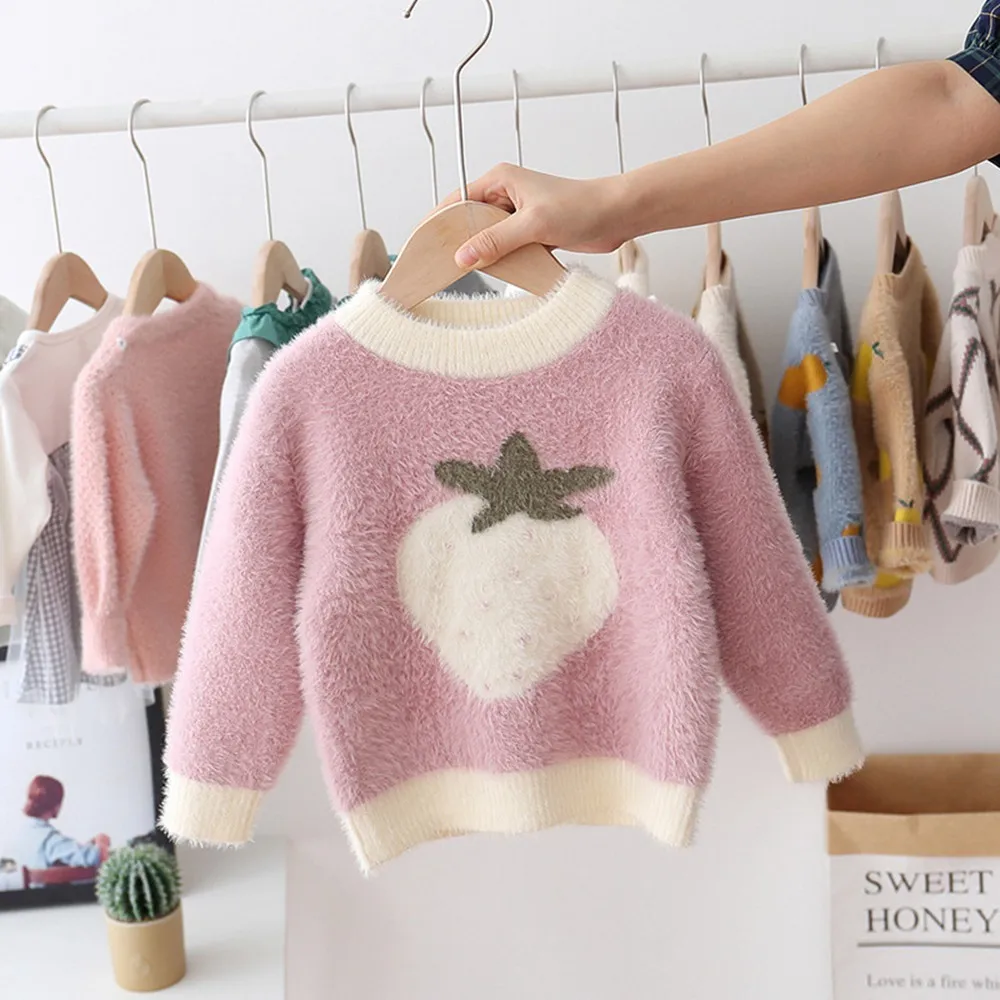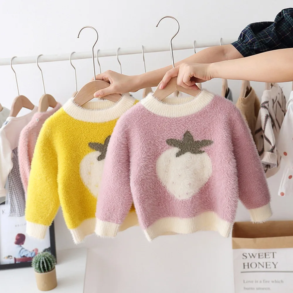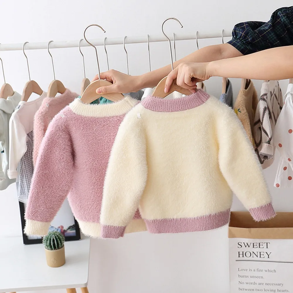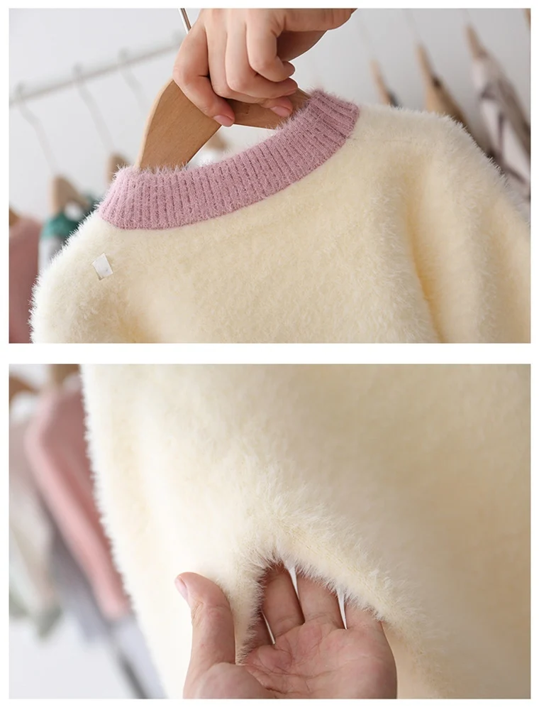 Осенне-зимний трикотаж для девочек, вязаный пуловер с длинными рукавами и круглым вырезом, 2021