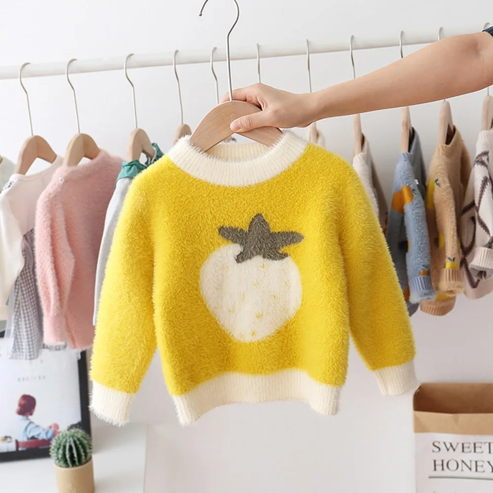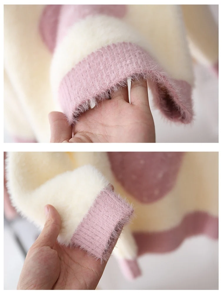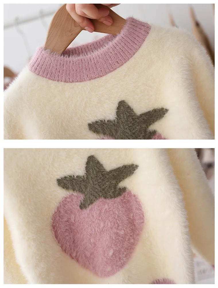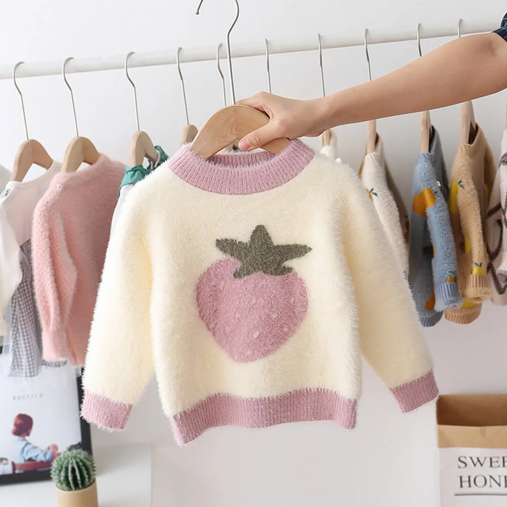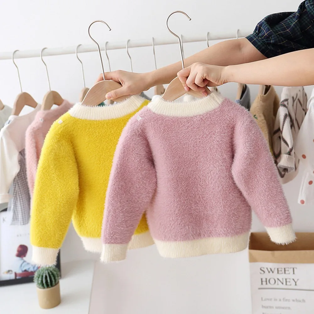 Осенне-зимний трикотаж для девочек, вязаный пуловер с длинными рукавами и круглым вырезом, 2021