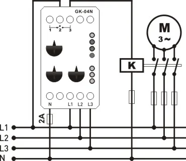 Сделайте соединения в соответствии с схемой. Установите устройство в соответствии с требуемой электрической зарядкой. Когда питание включено, если напряжение такое же, как и отрегулировано, реле led включается и реле тянет. В этом случае контакт (нет) 3 полюса. Когда значения напряжения avnormal, релейные релизы и светодиод выключены после ожидания, пока не будет установлено время. В этом чехол contact out is (NC)1.GK-04N тип имеют соответствующие светодиоды для высокого и низкого напряжения и фазового выхода из строя.