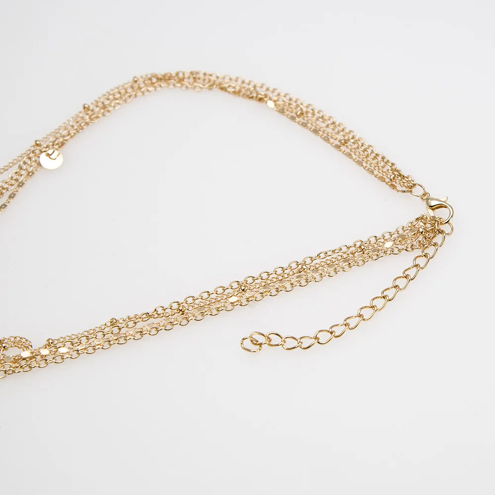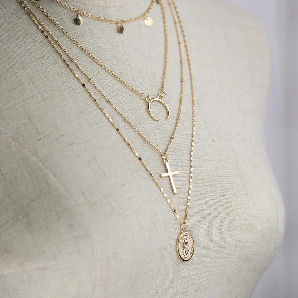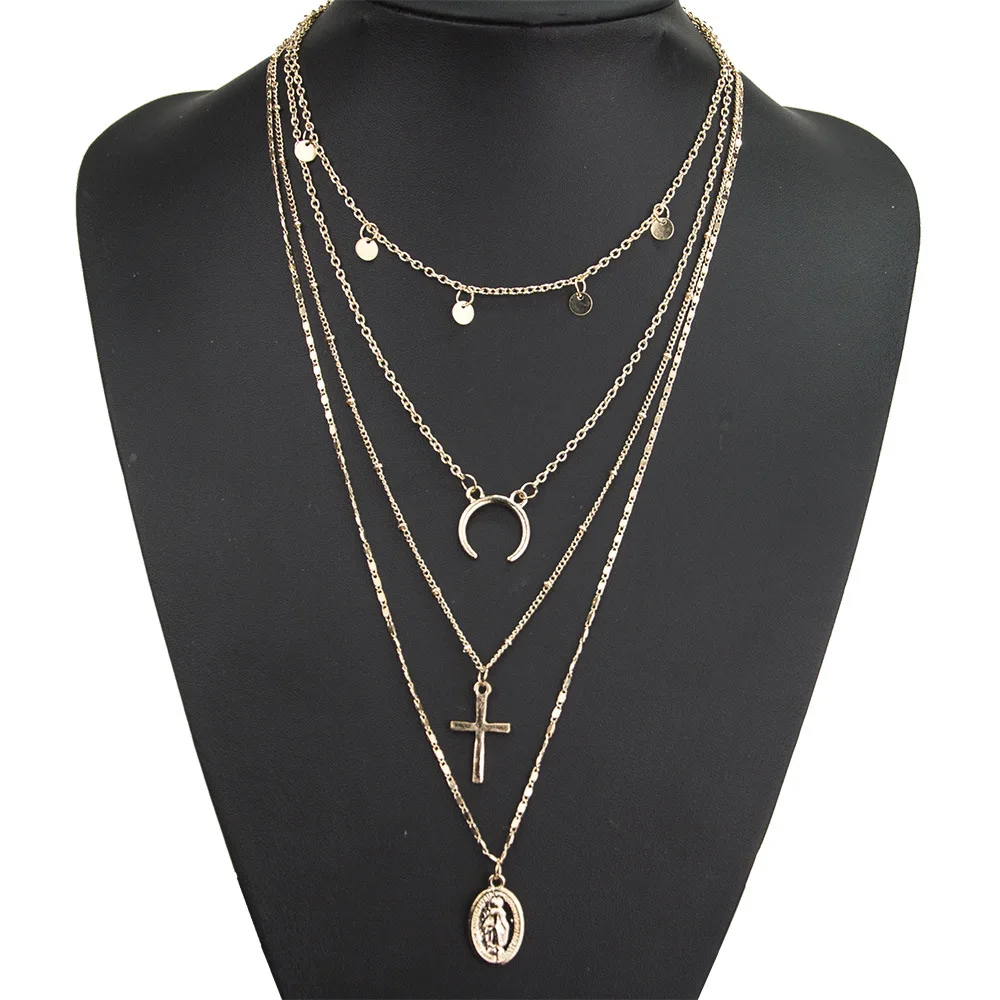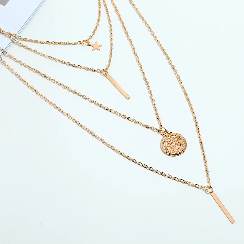 Многослойное женское ожерелье с подвеской, винтажное ожерелье золотого цвета с бусинами, луной, звездой, рога полумесяца, чокер, ювелирное изделие