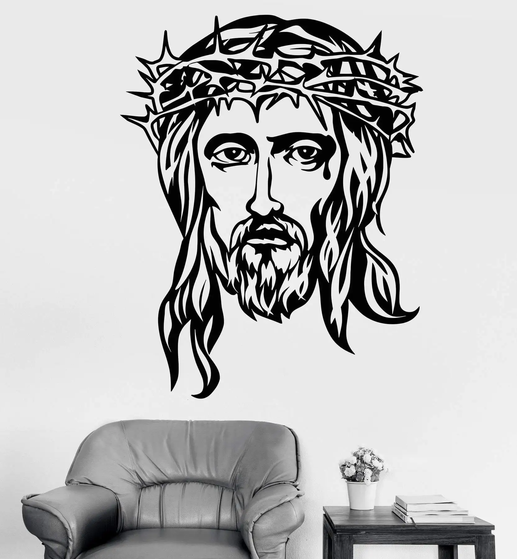 Виниловая наклейка на стену для гостиной, спальни, украшения дома, Божья голова Иисуса, Религиозная Христианская наклейка, художественная роспись GXL27