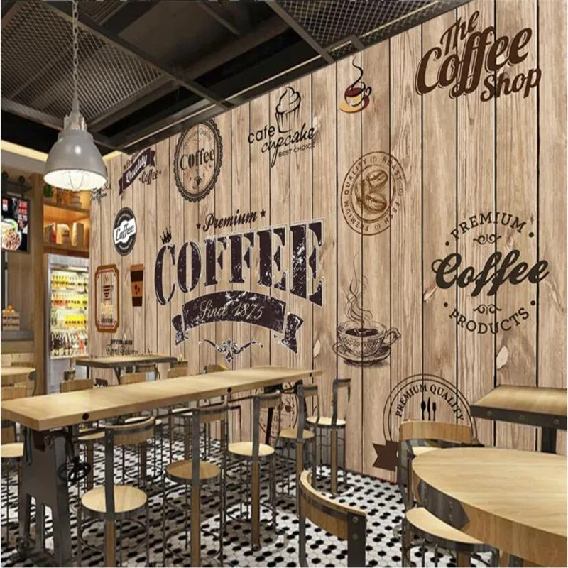 Пользовательские Meal & Coffee Beauty Ретро коричневая деревянная доска фон настенная бумага кафе Кофейня промышленный Декор настенная бумага 3D