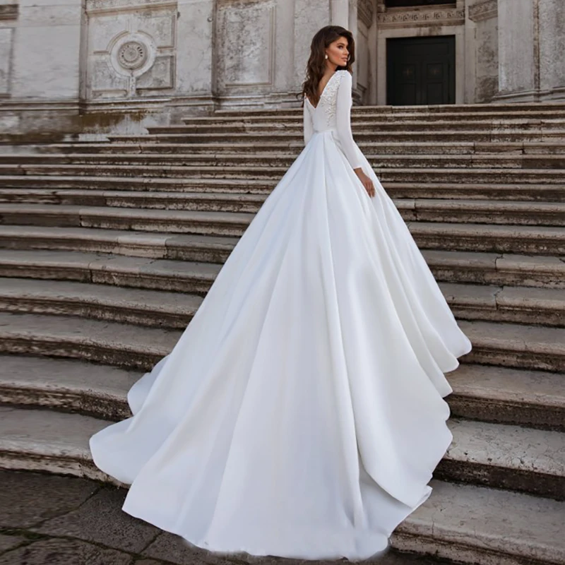 Свадебное платье-трапеция MYYBLE, атласные свадебные платья цвета слоновой кости, элегантное платье невесты с длинным рукавом, дешевое свадебное платье 2022