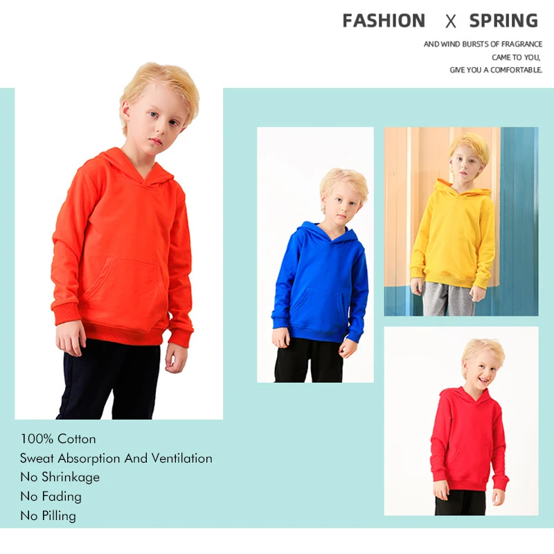 Детские толстовки, черные однотонные топы, хлопковые толстовки с капюшоном для мальчиков, толстовки с капюшоном для девочек, школьная одежда для подростков, От 2 до 10 лет