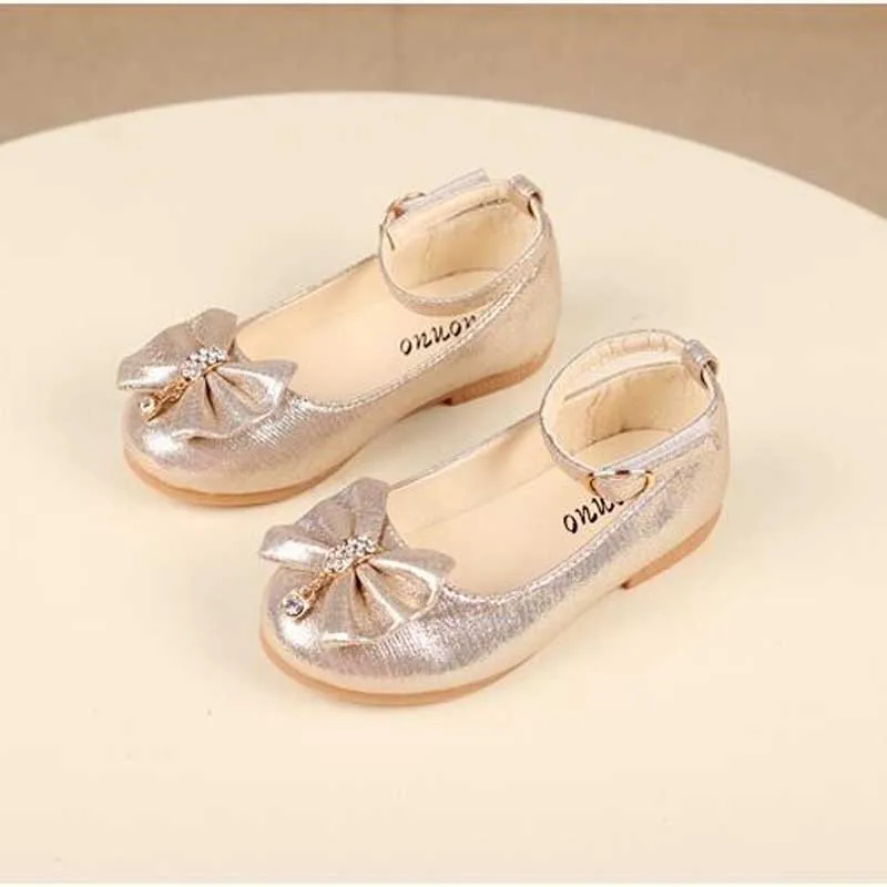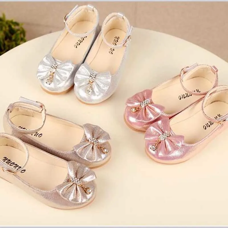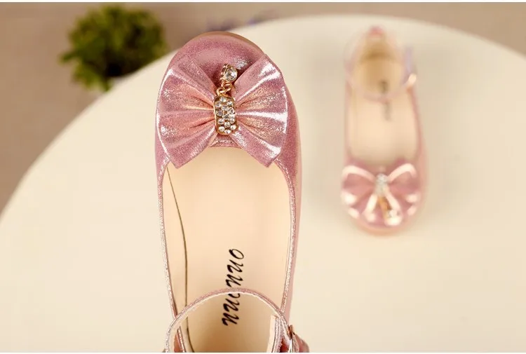 Кроссовки детские с бантом, кожаные, с жемчугом и бриллиантами, детские танцевальные туфли, на осень