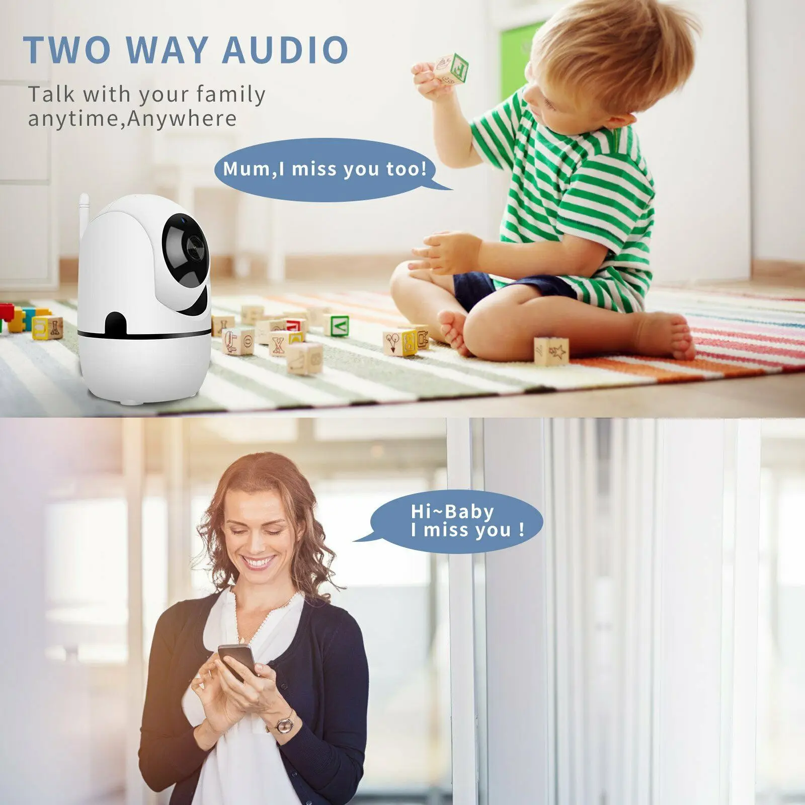 Двустороннее аудио:С двухсторонней функцией голосовой связи в режиме реального времени и встроенным микрофоном и динамиком, вы можете видеть и общаться с семьей/гостями/домашними животными, когда находитесь вдали от дома.