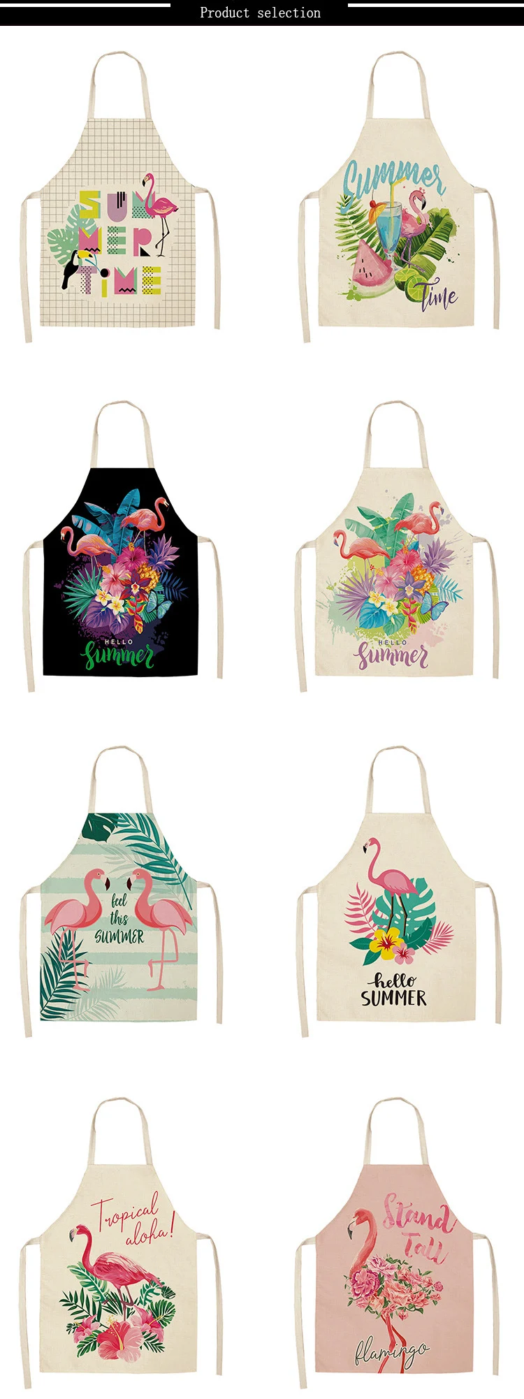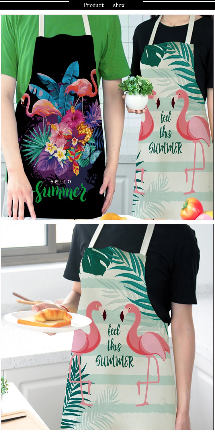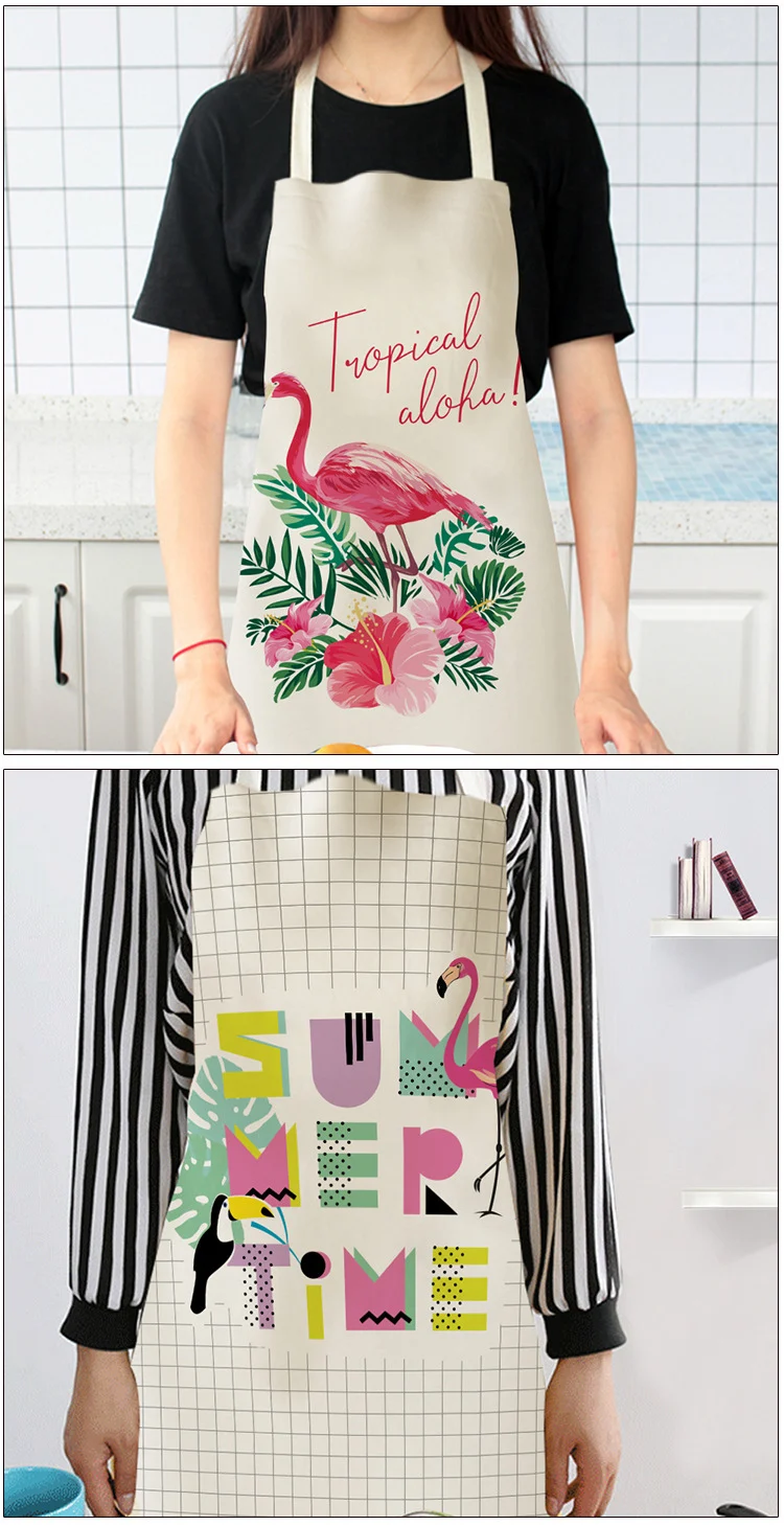 Фартук с рисунком птицы, Кухонные фартуки с фламинго, хлопковые льняные нагрудники для взрослых и детей, фартук для домашнего приготовления пищи, барбекю, принадлежности для уборки