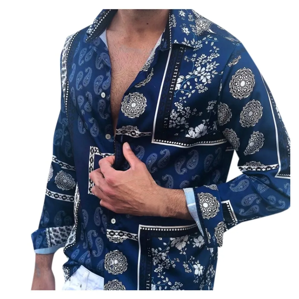 Социальные рубашки, мужские свободные вечерние платья с длинными рукавами, Мужская блузка в британском стиле, гавайская рубашка с отложным воротником, Топы Camisa 2020