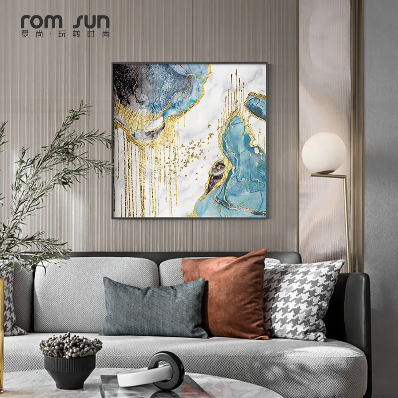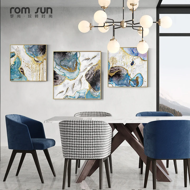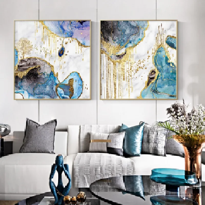 Абстрактная Картина на холсте с голубыми чернилами, плакаты и печат...
