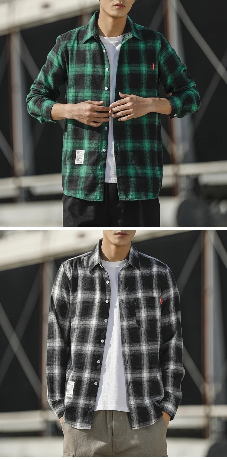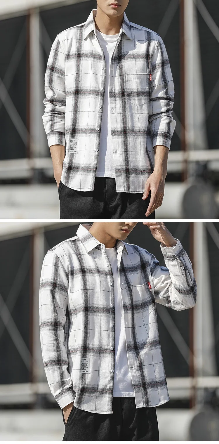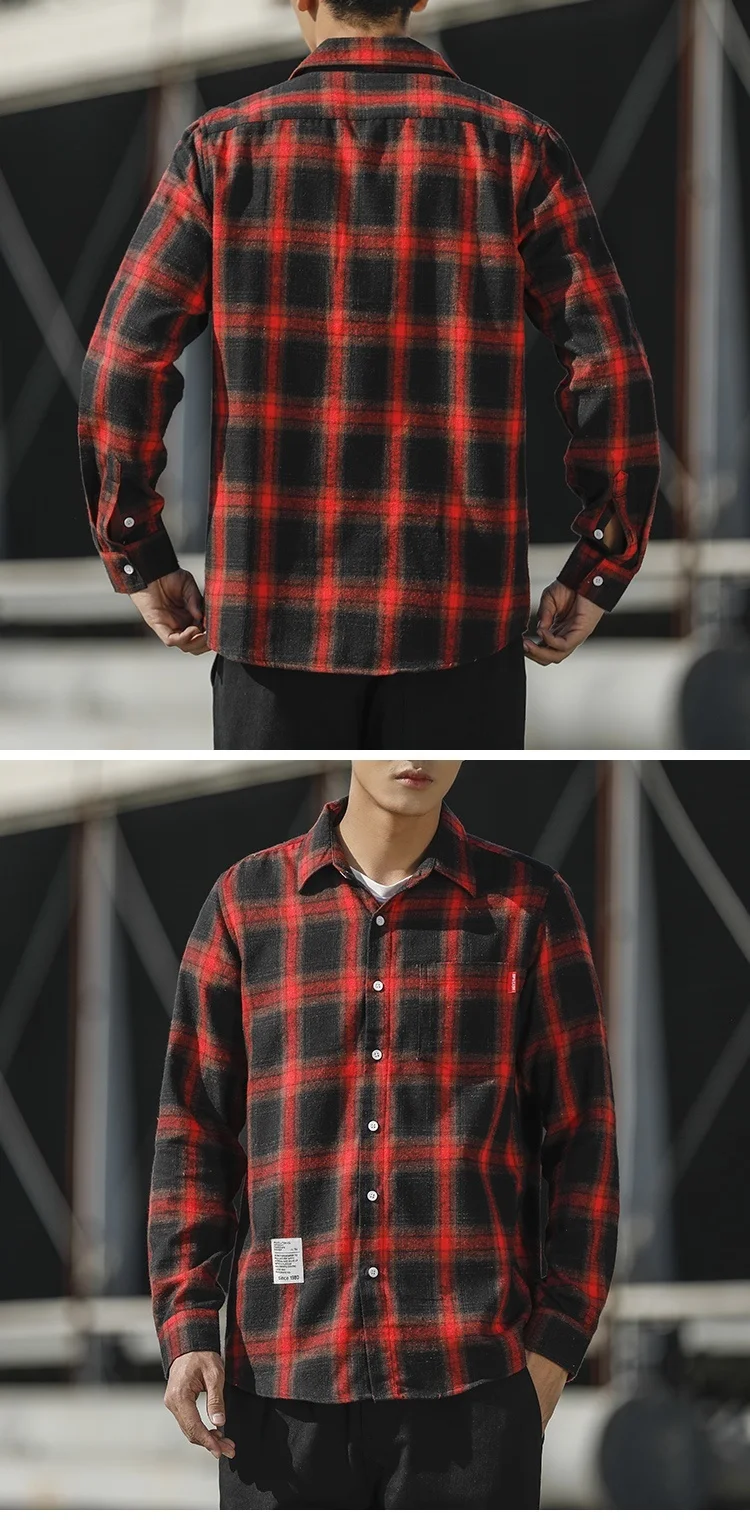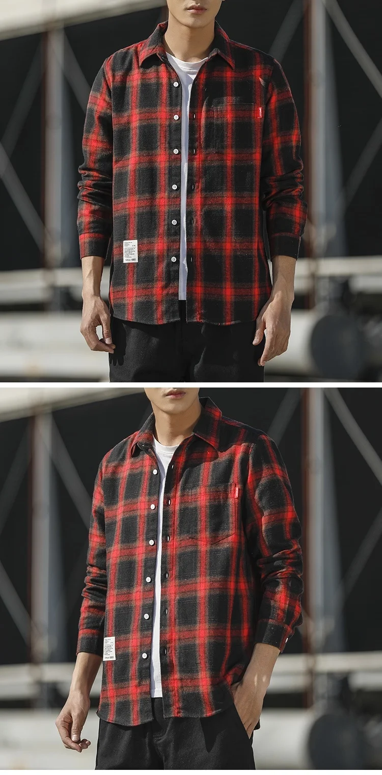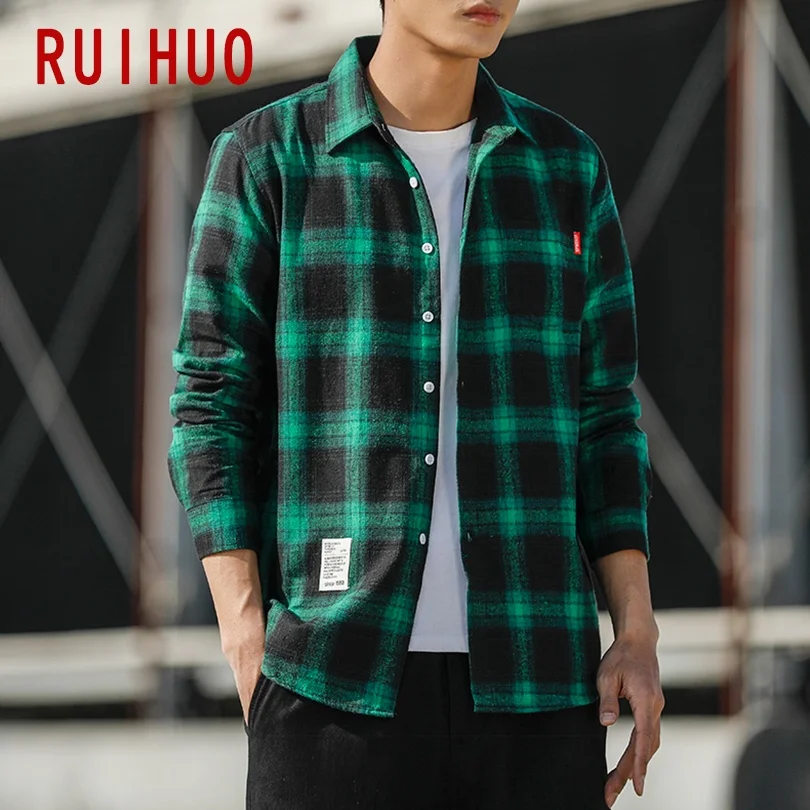 RUIHUO Повседневная рубашка в клетку мужская приталенная из хлопка и шерсти с длинным рукавом Мужская модная брендовая размера плюс M-3XL 2021 ВЕСНА Новинка