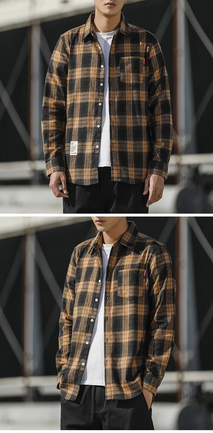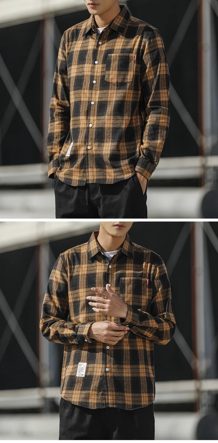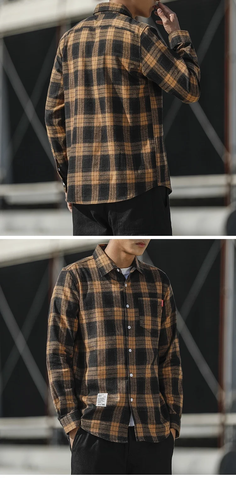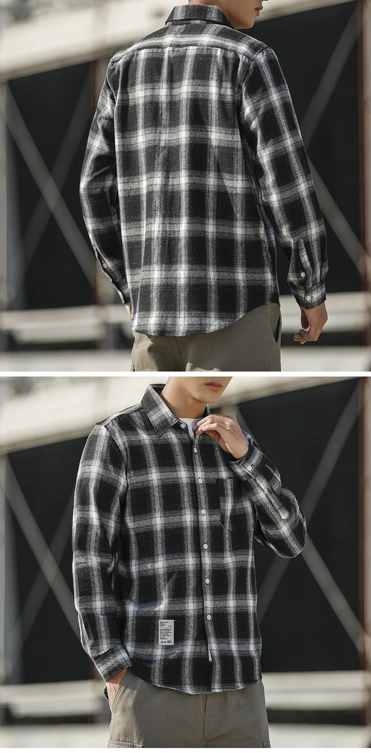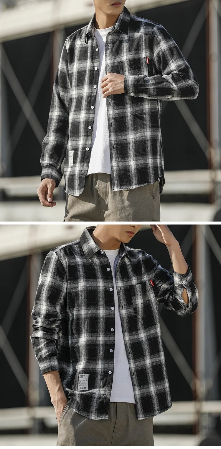 RUIHUO Повседневная рубашка в клетку мужская приталенная из хлопка и шерсти с длинным рукавом Мужская модная брендовая размера плюс M-3XL 2021 ВЕСНА Новинка