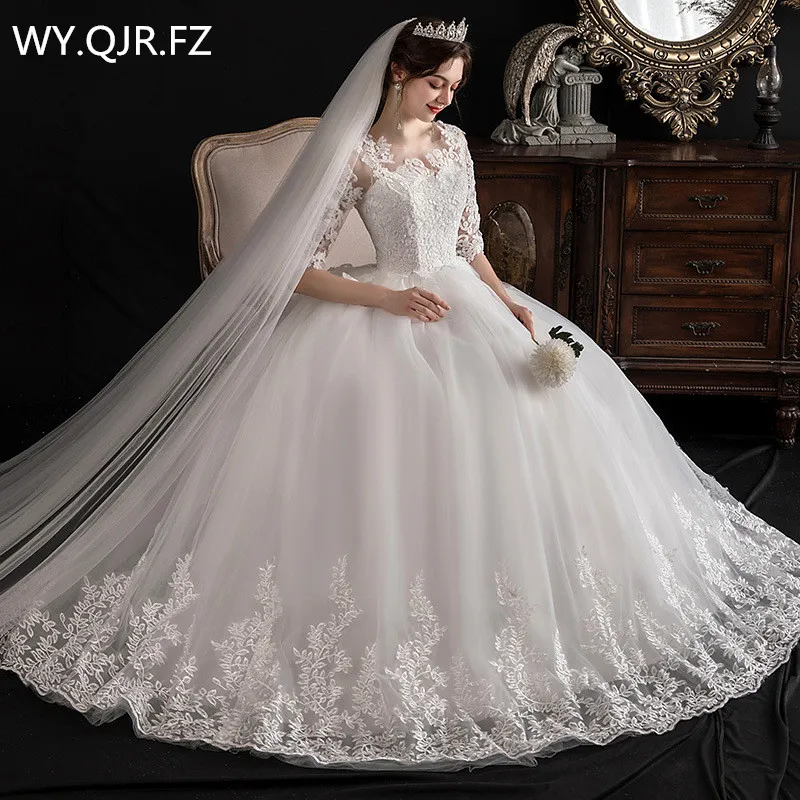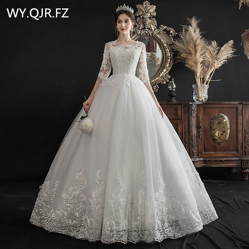 YC-S30 # бальное свадебное платье с вышивкой, кружевное вечервечерние белое платье, длинное кружевное платье с круглым вырезом и средним рукавом, оптовая продажа