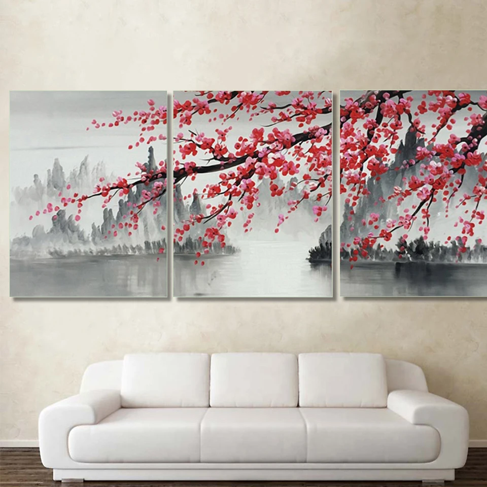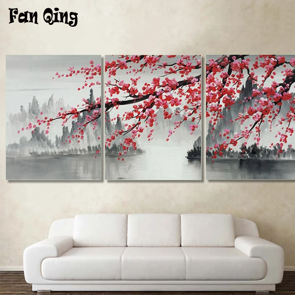 Алмазная живопись 5D, полный квадратный цветок, цветение сливы, 3 шт.компл., алмазная вышивка крестиком, украшение для дома, подарок