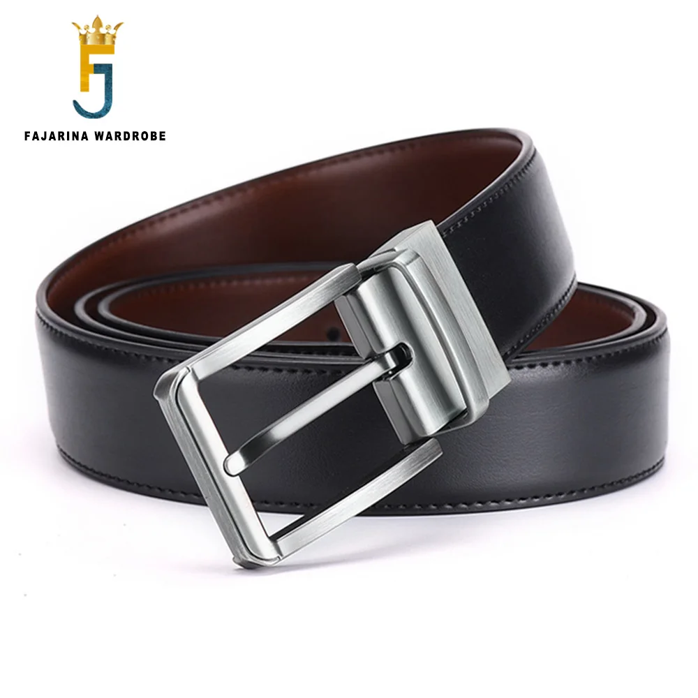 FAJARINA, хорошее качество, натуральная кожа, вращающийся сплав, пряжка, металлические ремни, мужские, двухсторонние, бу, ремень, аксессуары 2020, N17FJ825