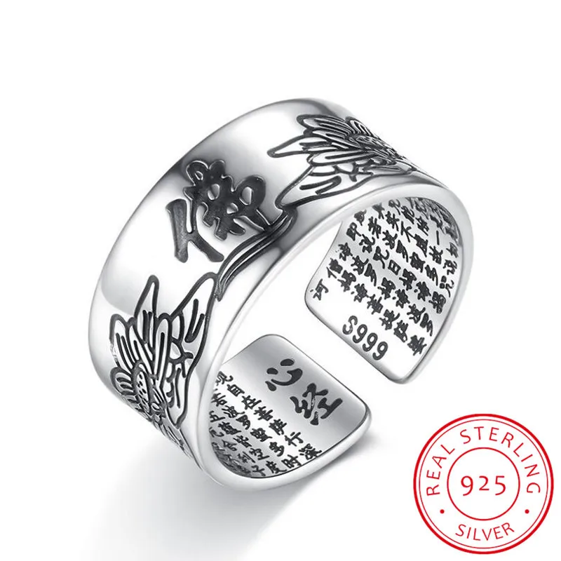925 пробы Серебряное ювелирное изделие винтажный амулет Будда Лотос балтийские буддийские Писания Открытые Кольца для мужчин женщин мужчин S-R90