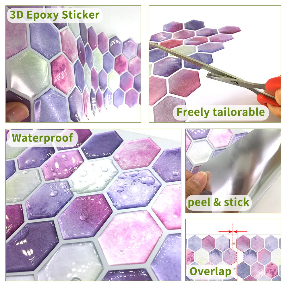 Самоклеющиеся виниловые 3D мозаичные плитки для кухни, ванной комнаты, пилинг и палка с шестигранной 3D наклейкой, водонепроницаемые