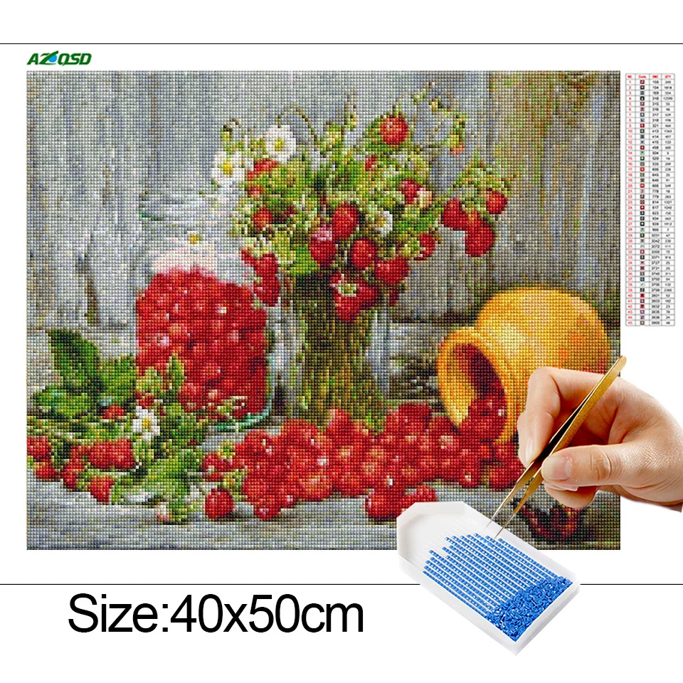 AZQSD украшение для кухни, алмазные вышитые фрукты, красный подарок для дома, сделай сам, декоративное ремесло, алмазная живопись, Цветочная мозаика, узор