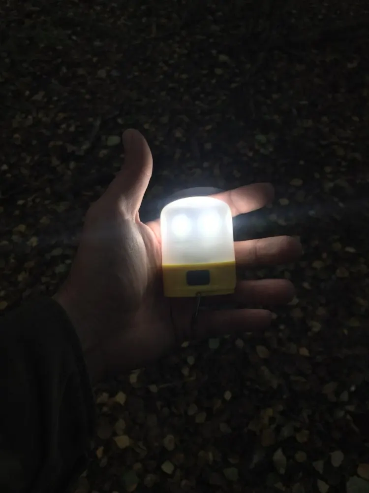 Фонарь отличный, освещение для палатки более чем достаточное, даже при минимальном режиме. Можно использовать как стоя, так и подвешивать на скобку. Водозащищенность присутствует, но под дождем я бы не использовал.