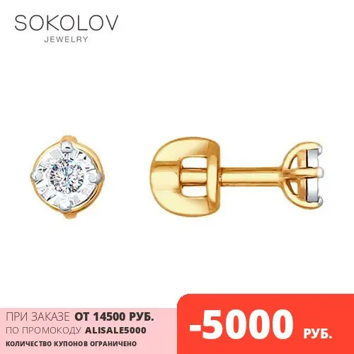 Серьги SOKOLOV из золота с алмазной гранью, Золото, 585, Женские, С...