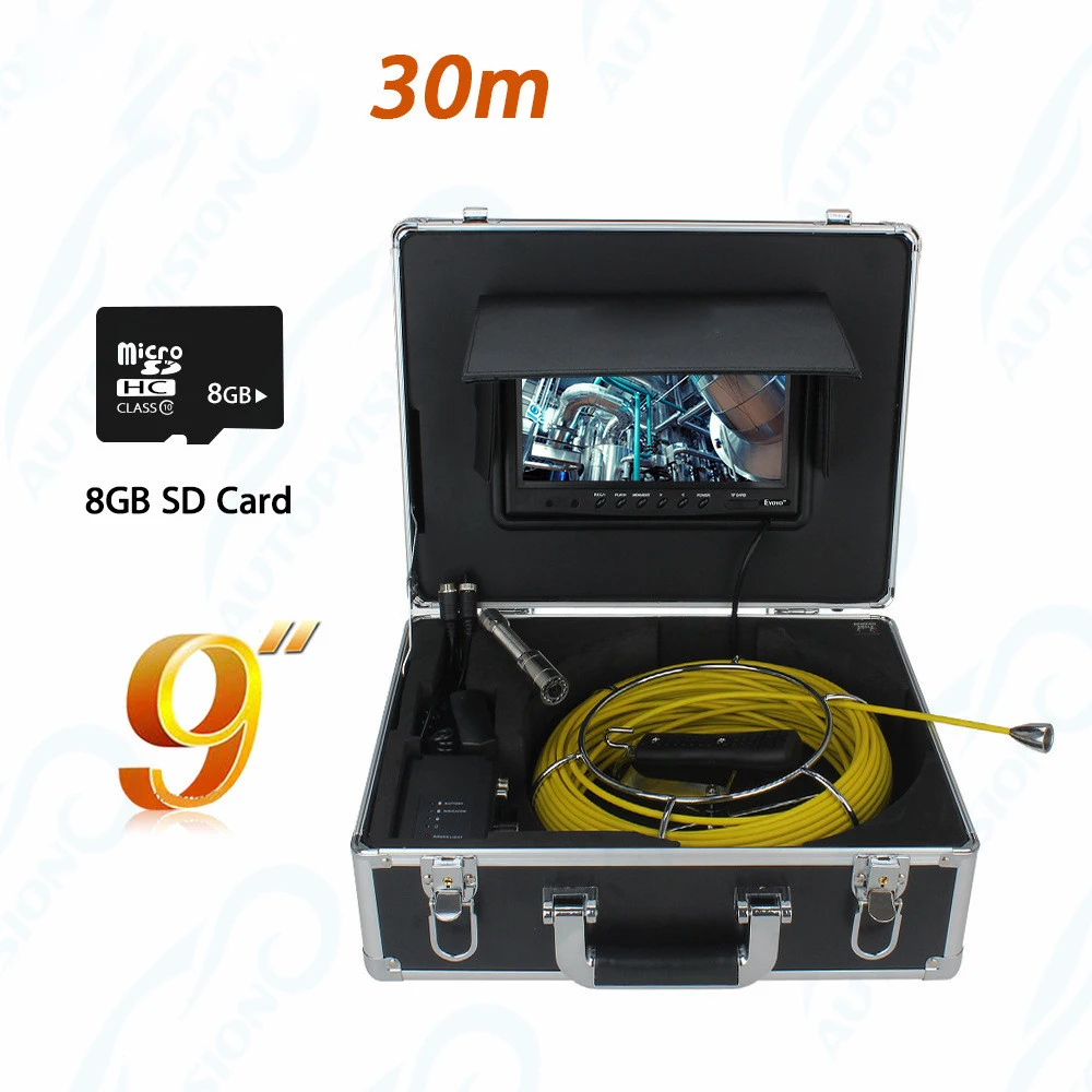 WP90A 23 мм градиентные фильтры нормальной для канализации инспекционная служба видео инспекционная камера для канализационных труб с 9-дюймовым дисплеем 23 мм объектив камеры рыбий глаз 8 Гб