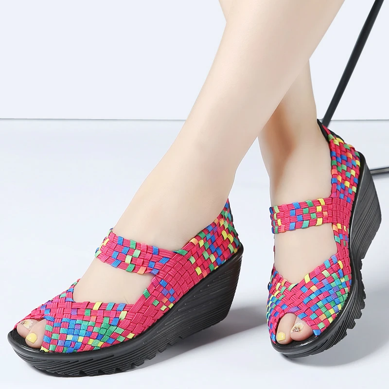 Сандалии женские на платформе, Удобная Плетеная повседневная обувь ...