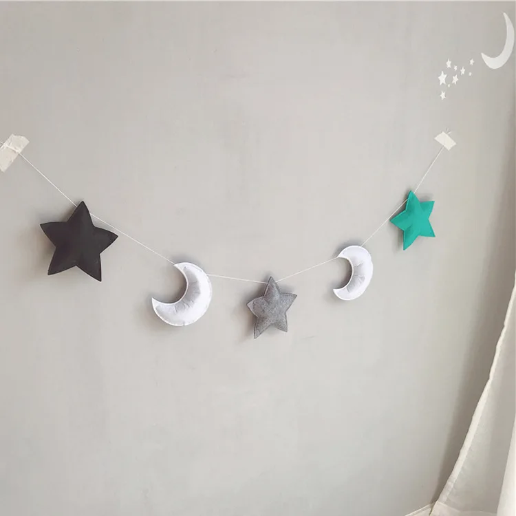 Нетканая гирлянда из Луны, облаков, звезд, 5 шт.