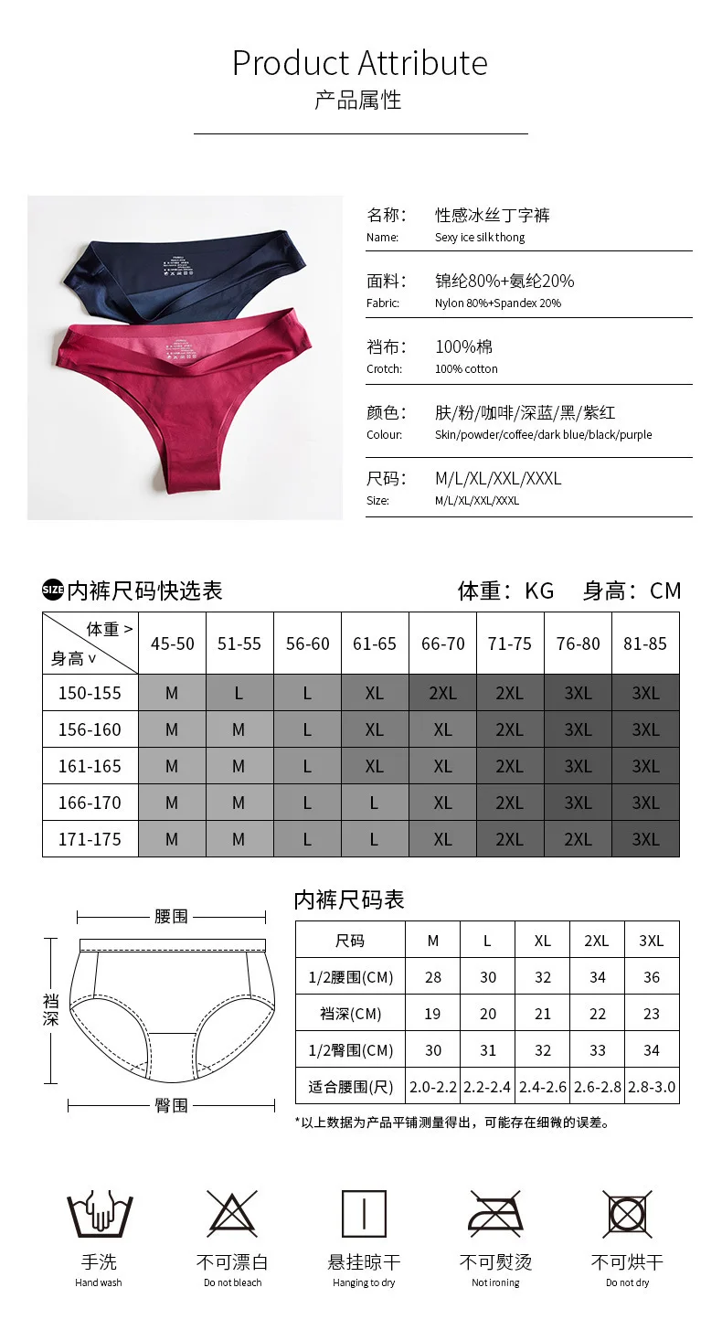 Сексуальные стринги из ледяного шелка, тянущиеся трусы, мягкое дыша...